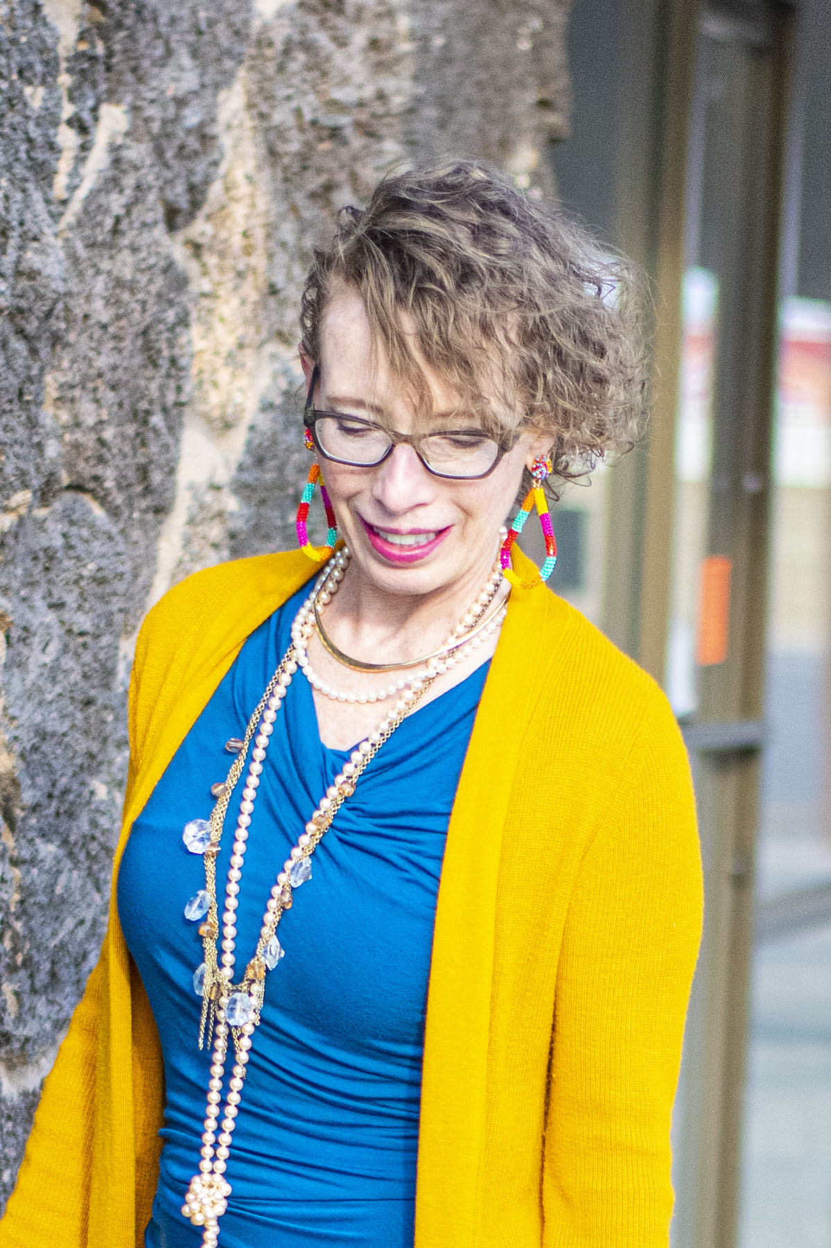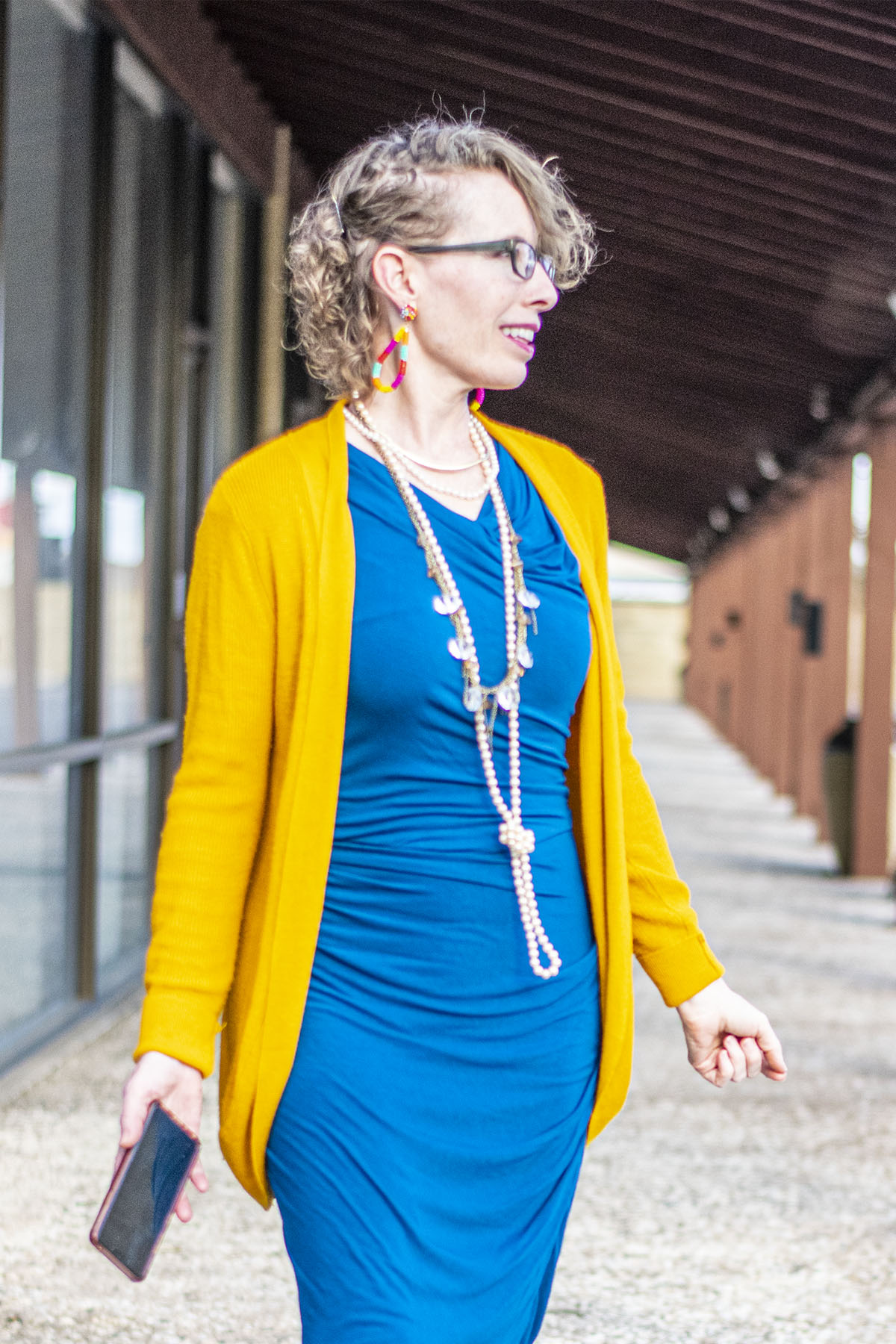 So here I am to push you out of your comfort zone and see if you’ll wear these items that have been collecting dust. FYI, the long pearl necklace I’m wearing in many of these photos is one I bought secondhand this winter. I’m also wearing my “real” pearl necklace from the pearls from my mother’s wedding in one photo, and then a clustered pearl necklace in another.