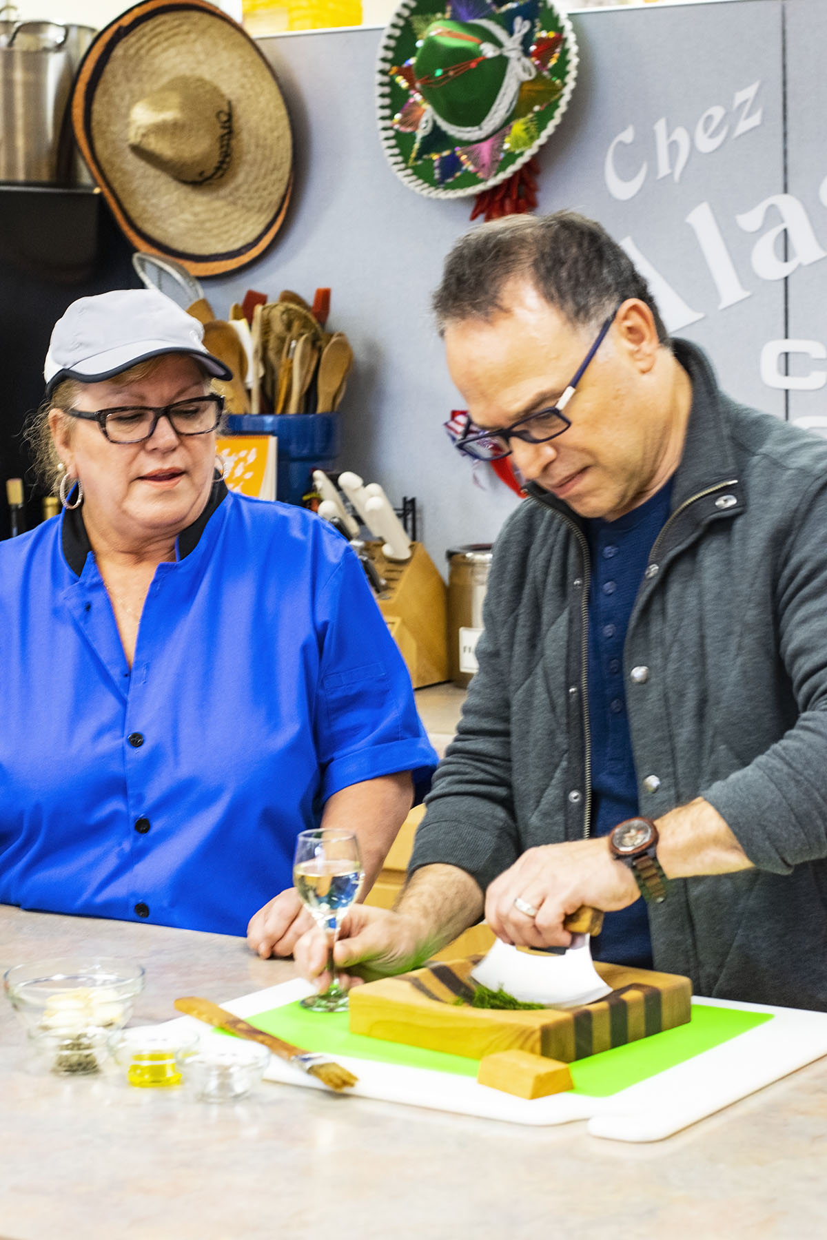 Then we were taken to a cooking school to learn how to use the wonderfully fresh salmon that is available. Rob even got put to work chopping up the parsley. Let me tell you, even at home, he’s a fabulous sous chef.