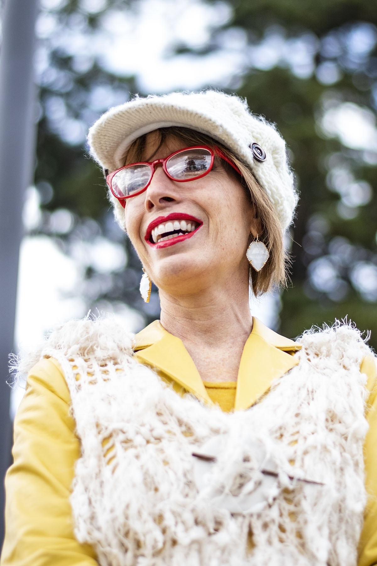 I actually wore tights under these jeans to keep warm. And I didn’t stop layering there. I added this boho type vest over my yellow leather jacket. We’ve experimented with layering vests over jackets in the past. The first time I saw this trick was one of those “aha” moments. Otherwise, I don’t wear my vests quite enough.