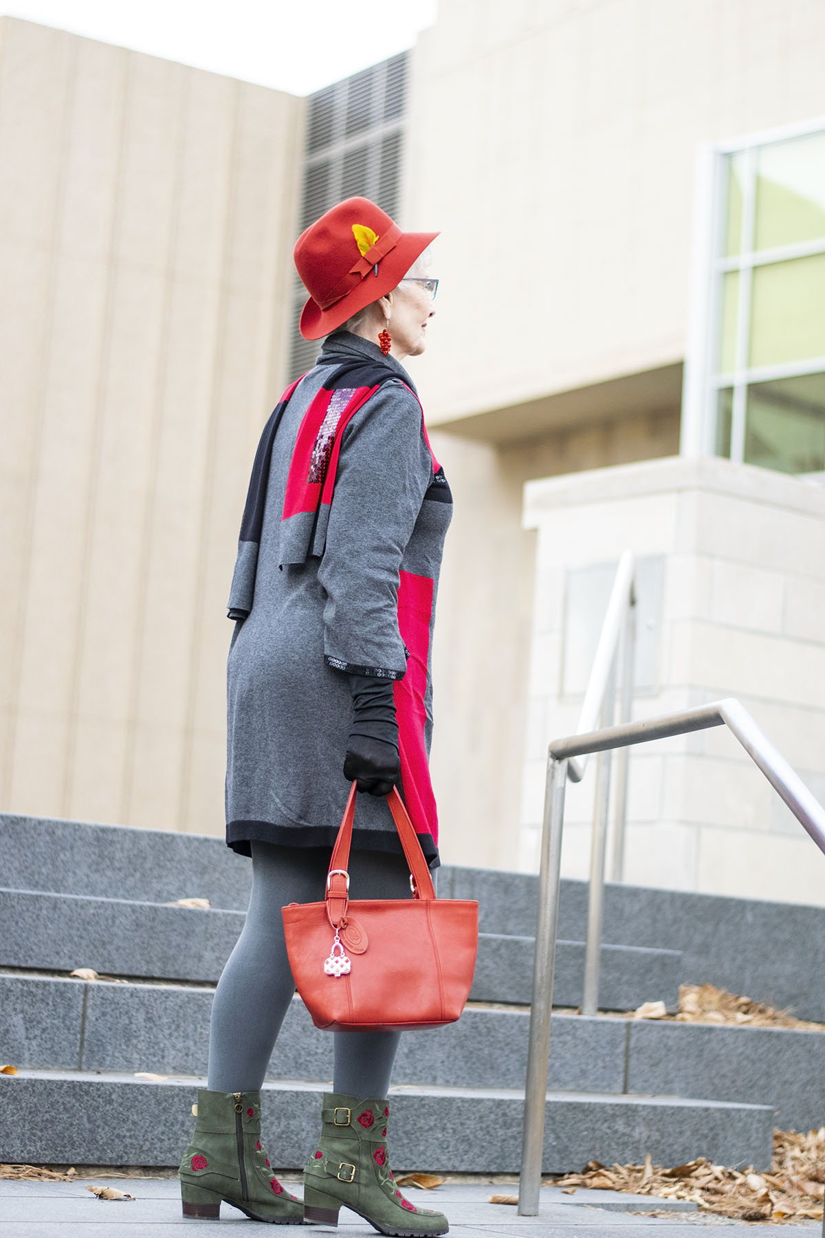 And look at how Nancy added a scarf to her purse for decoration. I always think this is such a fun way to use your scarves, yet I forget about it most days.