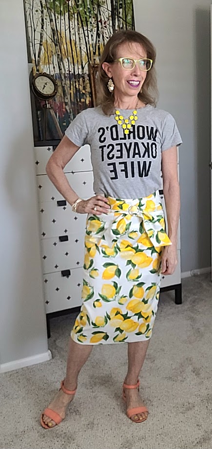 This skirt has been used in my color recipe in the past. I wore a darker grey T-shirt with it as one of the examples, but I like this lighter grey one even better.