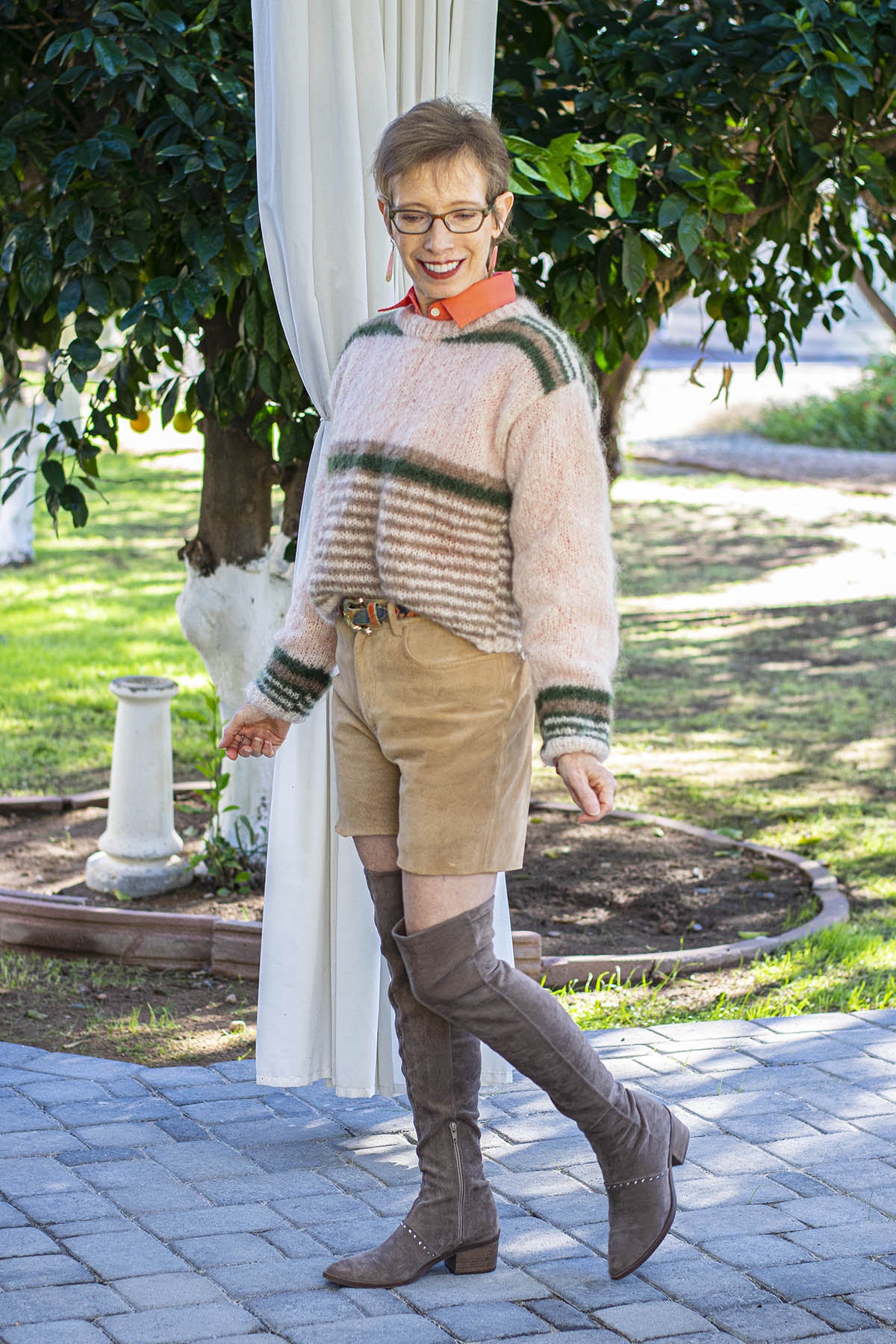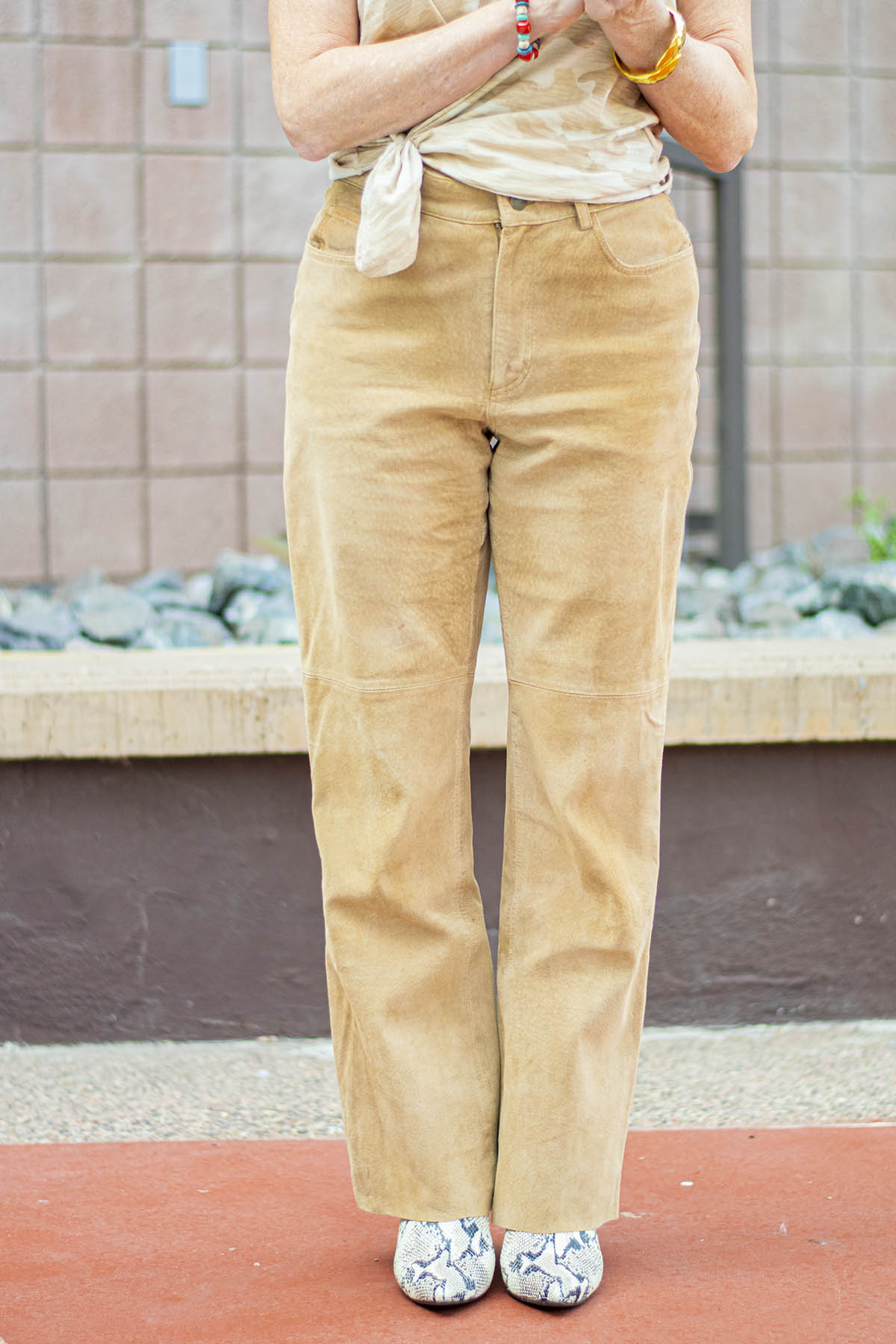The suede shorts were an easy sew alteration because the only sewing I did was to shorten the lining. I used glue for the suede part.