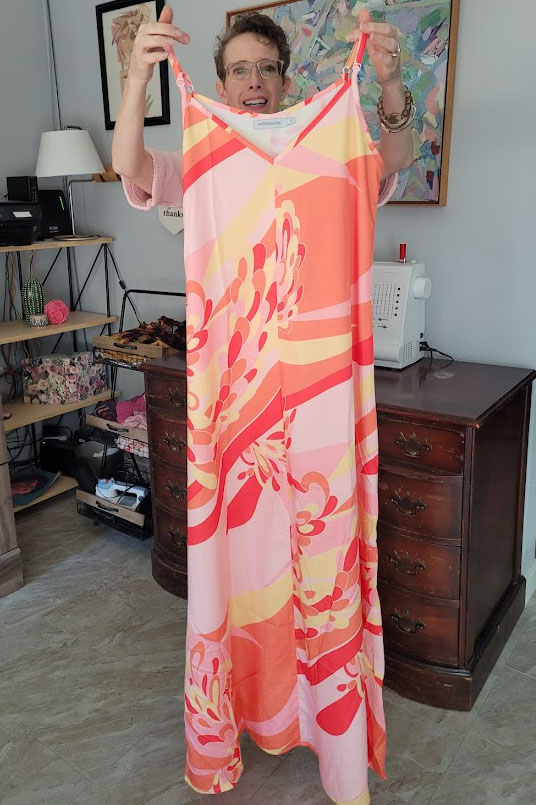 This dress was one I chose after winning an Instagram giveaway. I should have realized that a maxi dress would be way too long for my 5’2″ frame. But I loved the colors and figured I could fix it.