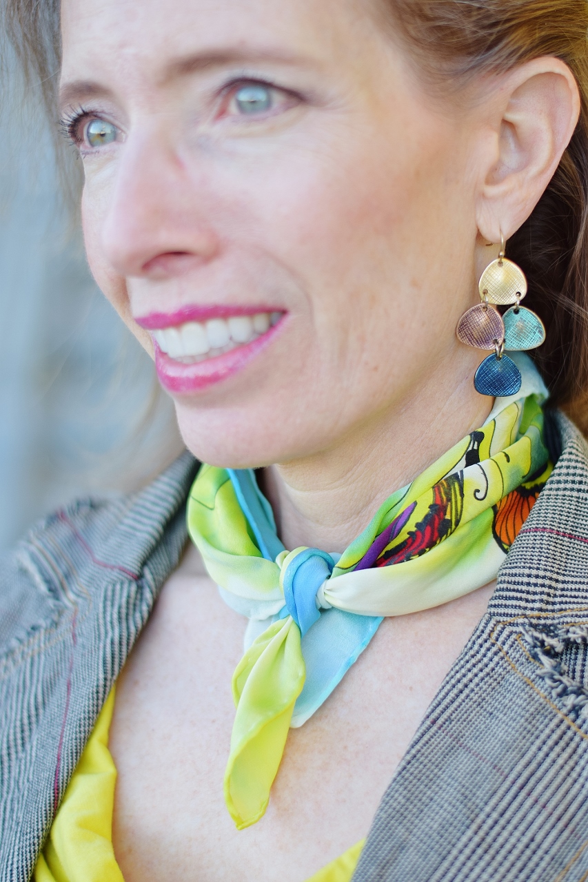 This blazer is one I used to wear to work a lot. To me, the idea of adding in another print with a print “workpiece” would be one great way to make it more fun & less serious.