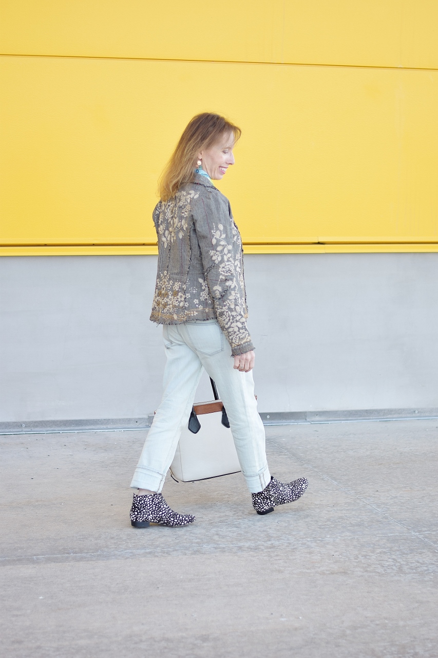 One of the newer trends for spring is the embroidery detailing on everything. That’s one of the reasons I pulled out this blazer! It has all kinds of embroidery and even some sparkle all over it.
