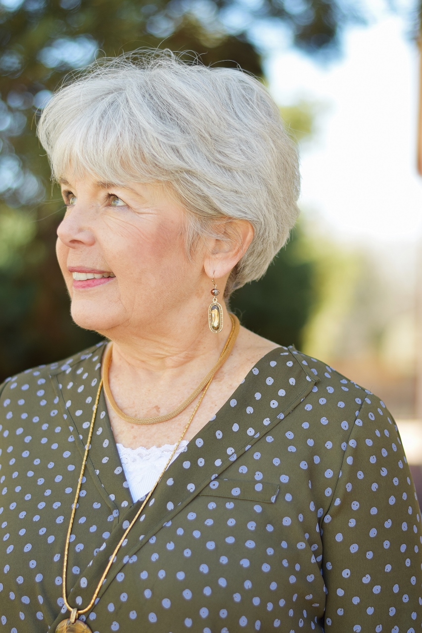 Brown jeans may not be as popular as black or blue, but they are neutral and can go with so many other colors. Nancy’s jeans are a coated variety. I can’t tell you how fabulous they are if you happen to have pets because the fur doesn’t stick to them as much!