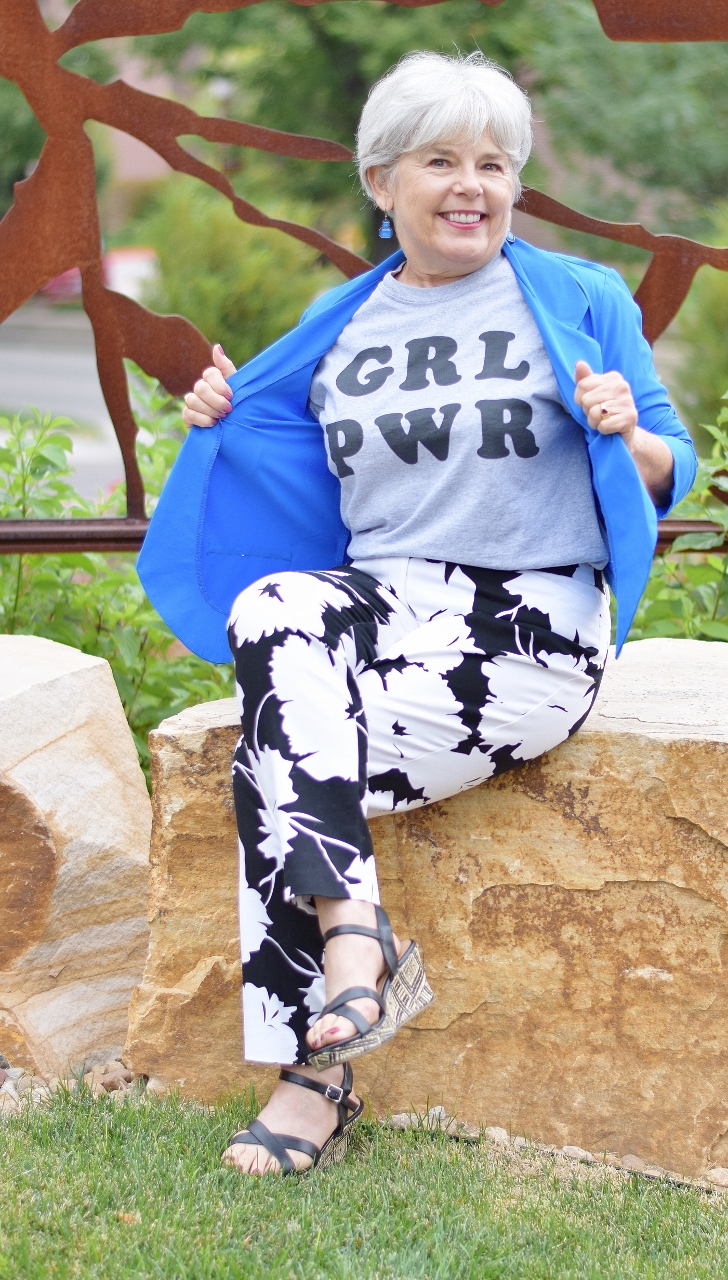 Nancy’s (60’s) Graphic T-Shirts Outfit: I picked the graphic t-shirt GRL PWR for Nancy! She has a ton of girlfriends that she hangs out with playing bridge, travelling and going to many events. So I thought she’d get a kick out of it!