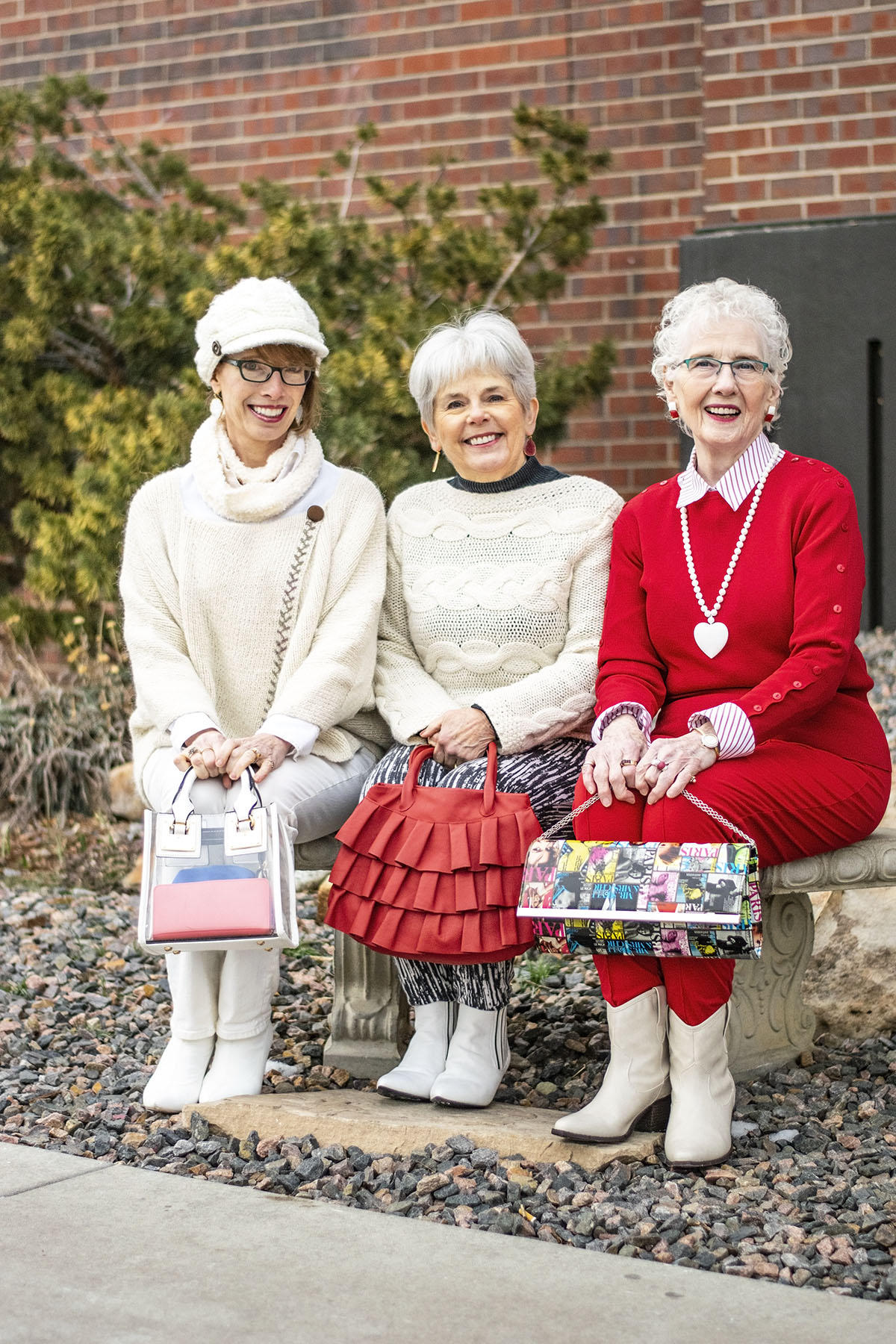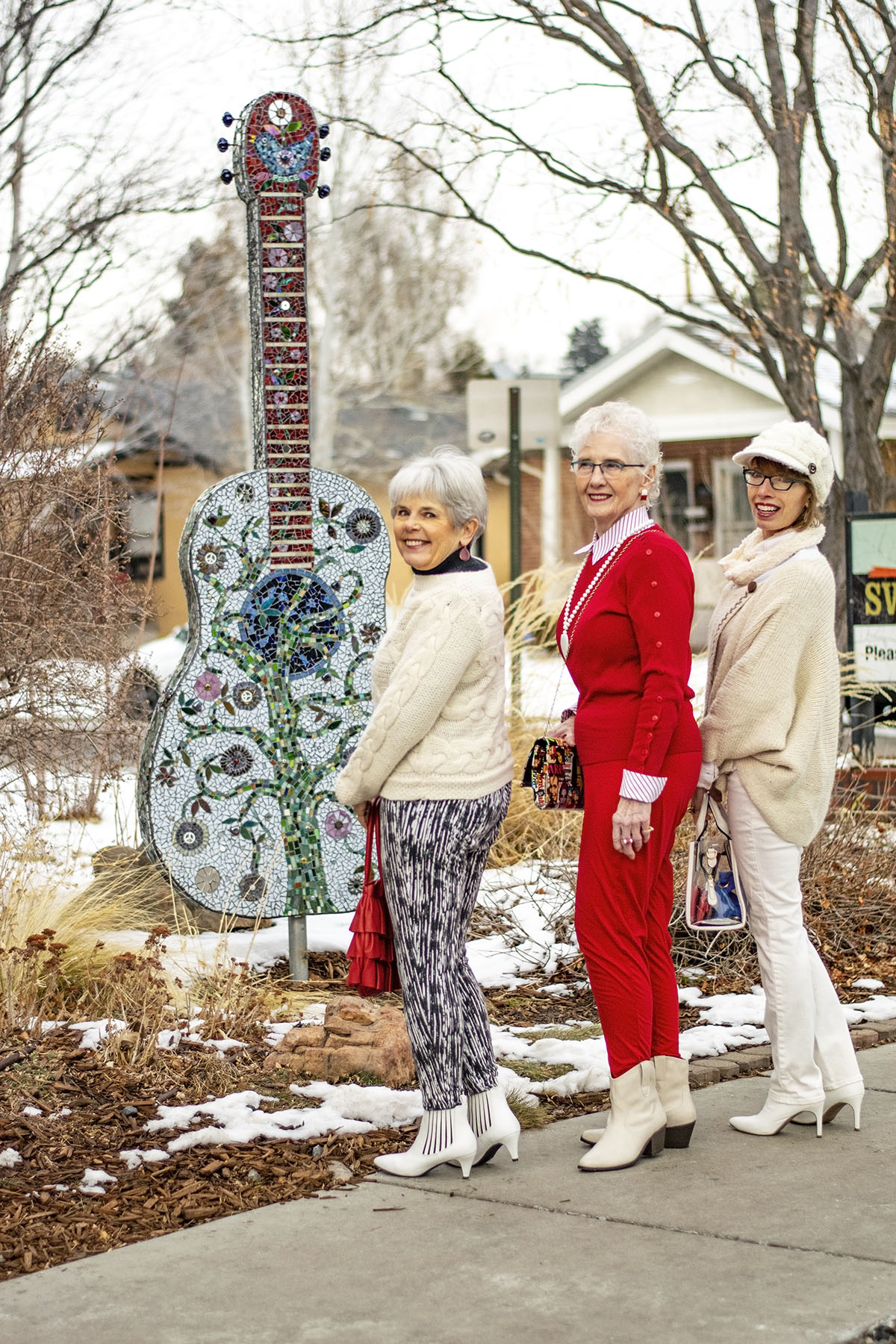 Then I had Nancy wear a white topper to bookend the boots. I thought this would work nicely with pants that had white in them too, although in the post, another blogger, Cathy, showed how that didn’t need to be.