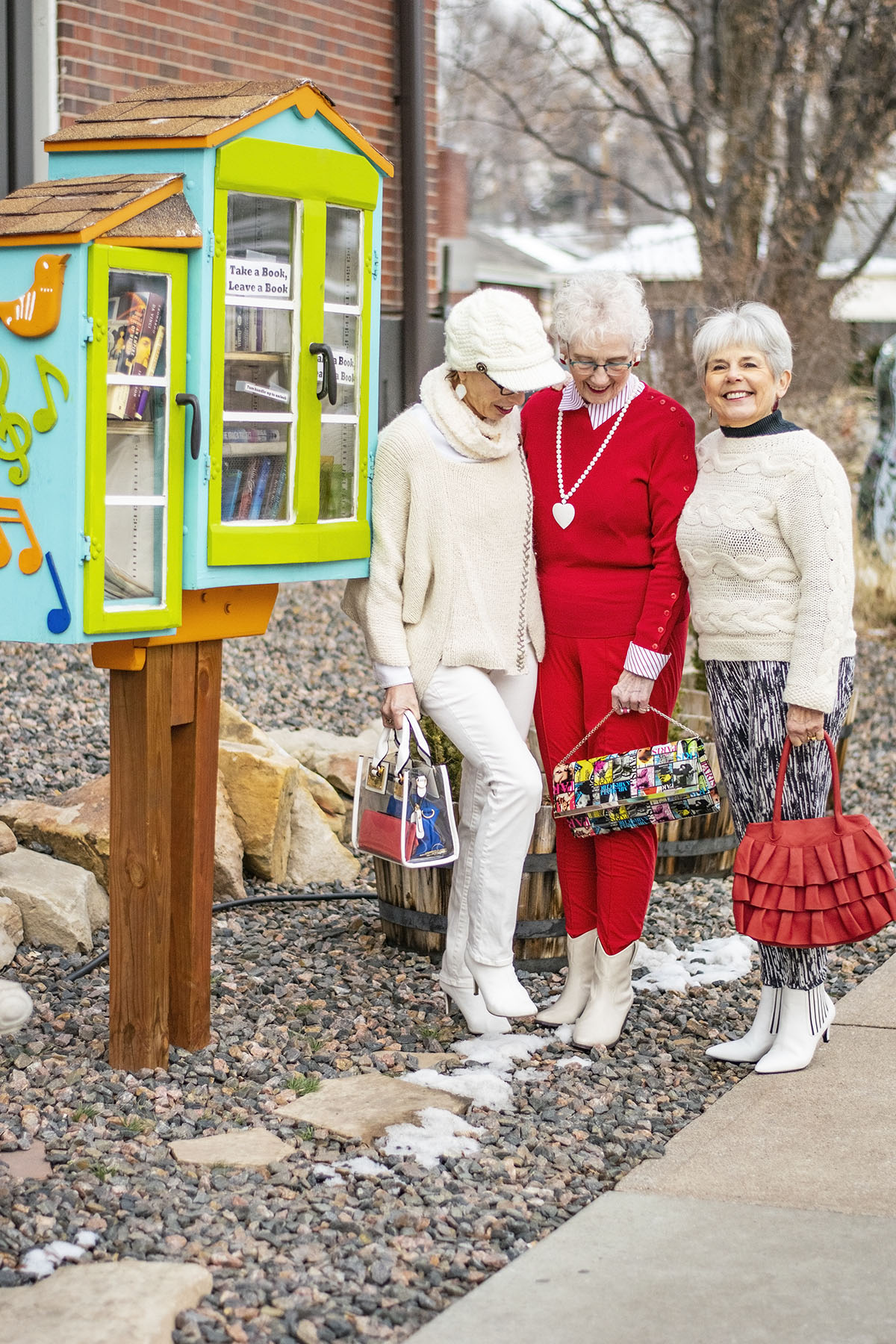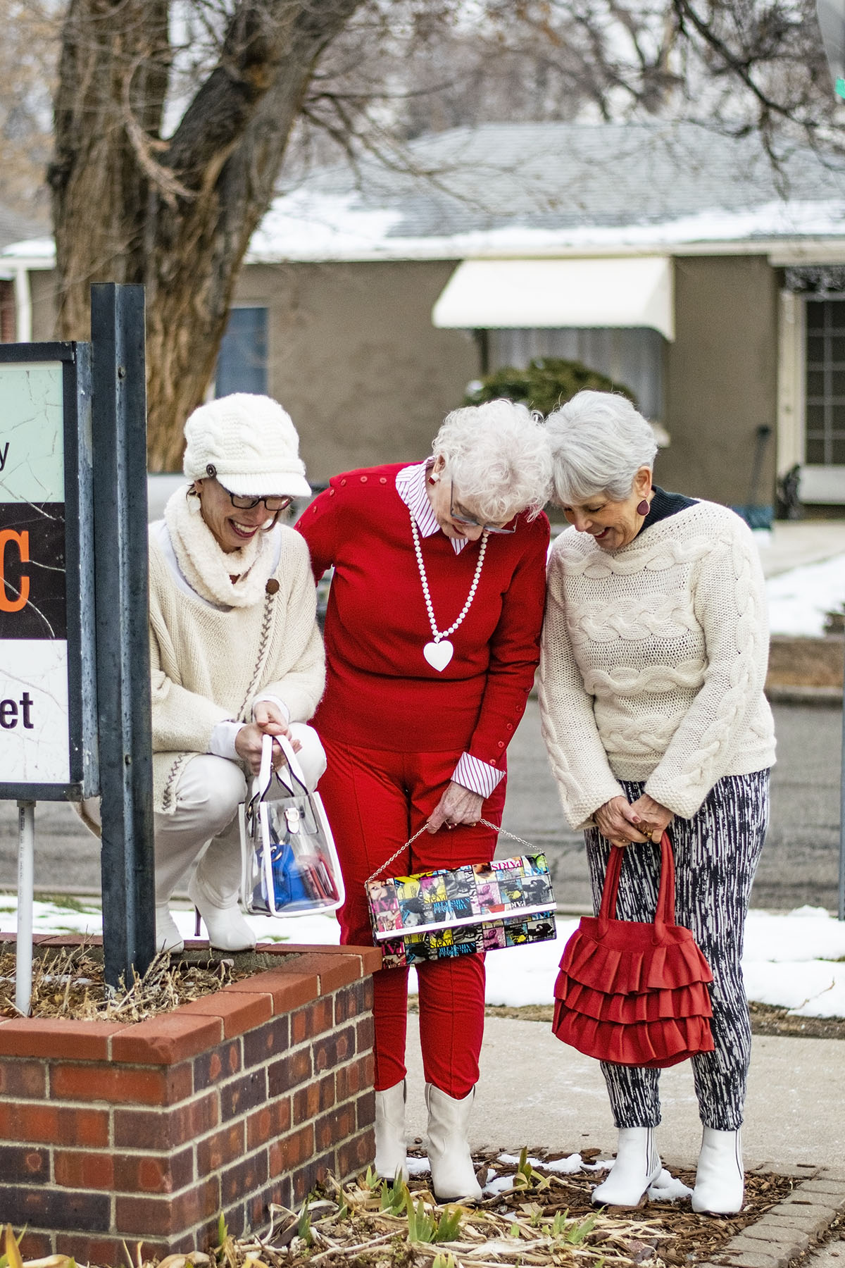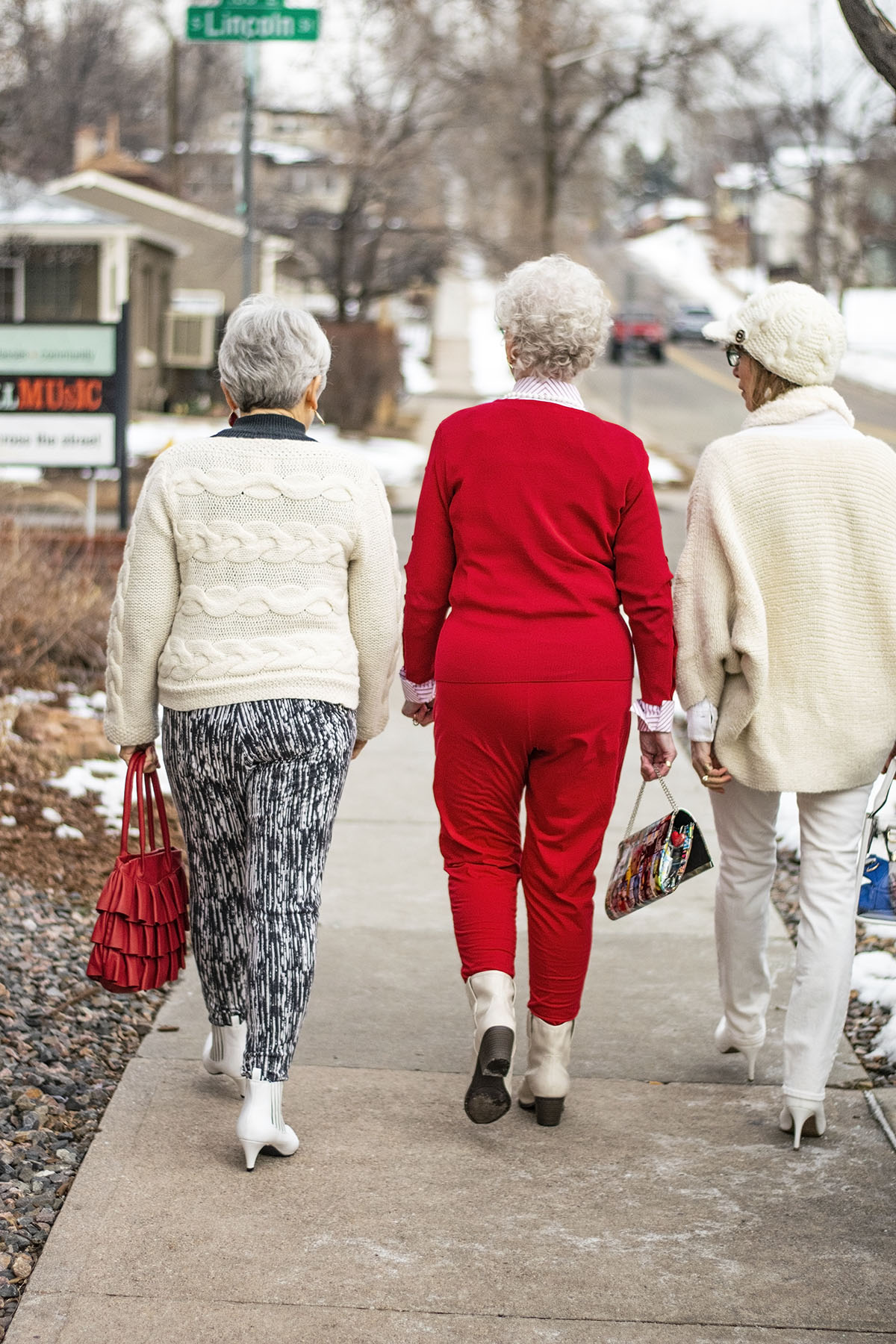 I had to include this photo below. It’s the same idea I talked about in our puffer coat post. Mom and I are talking and Nancy is a photographer’s dream by looking at the camera. Real life, folks!!
