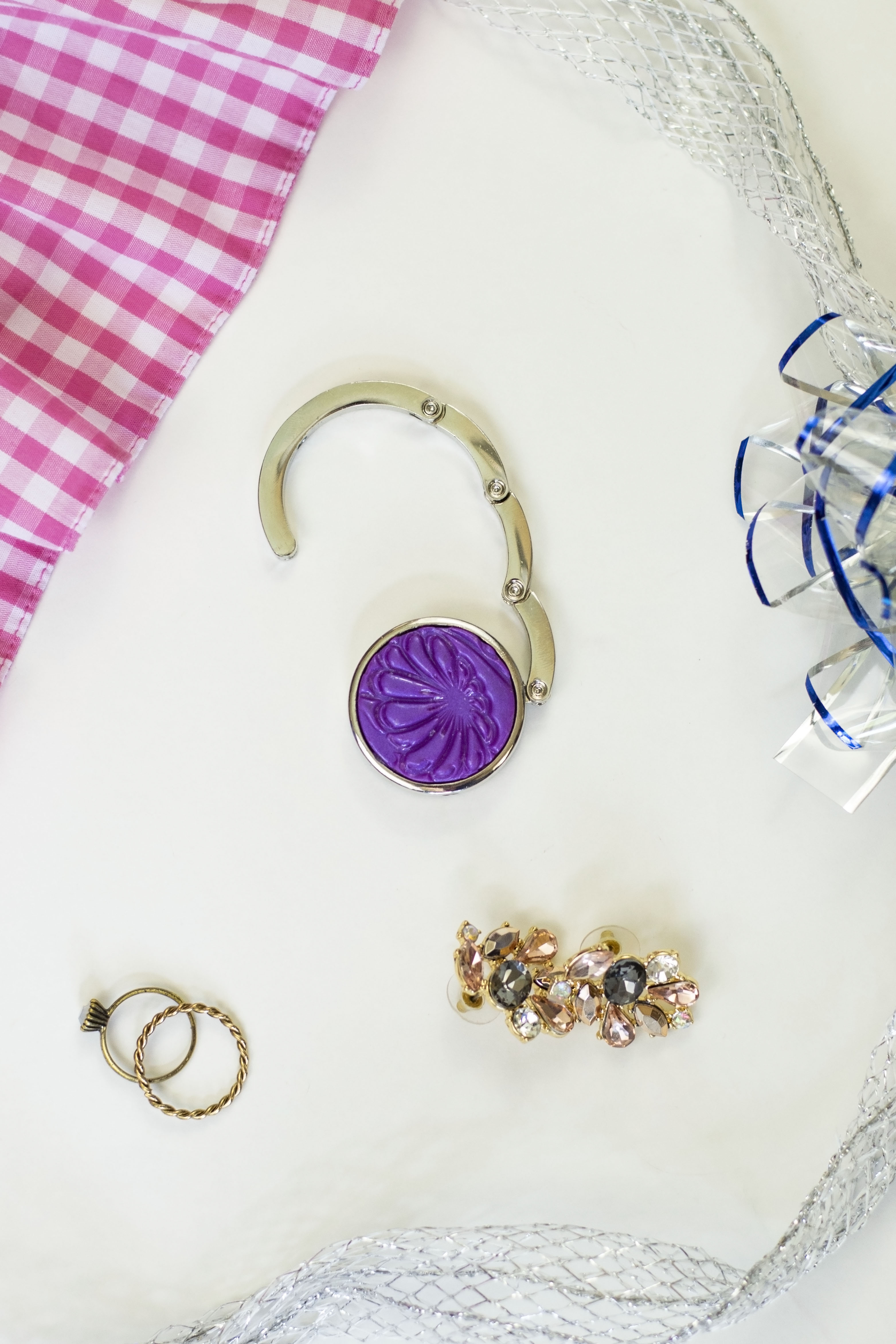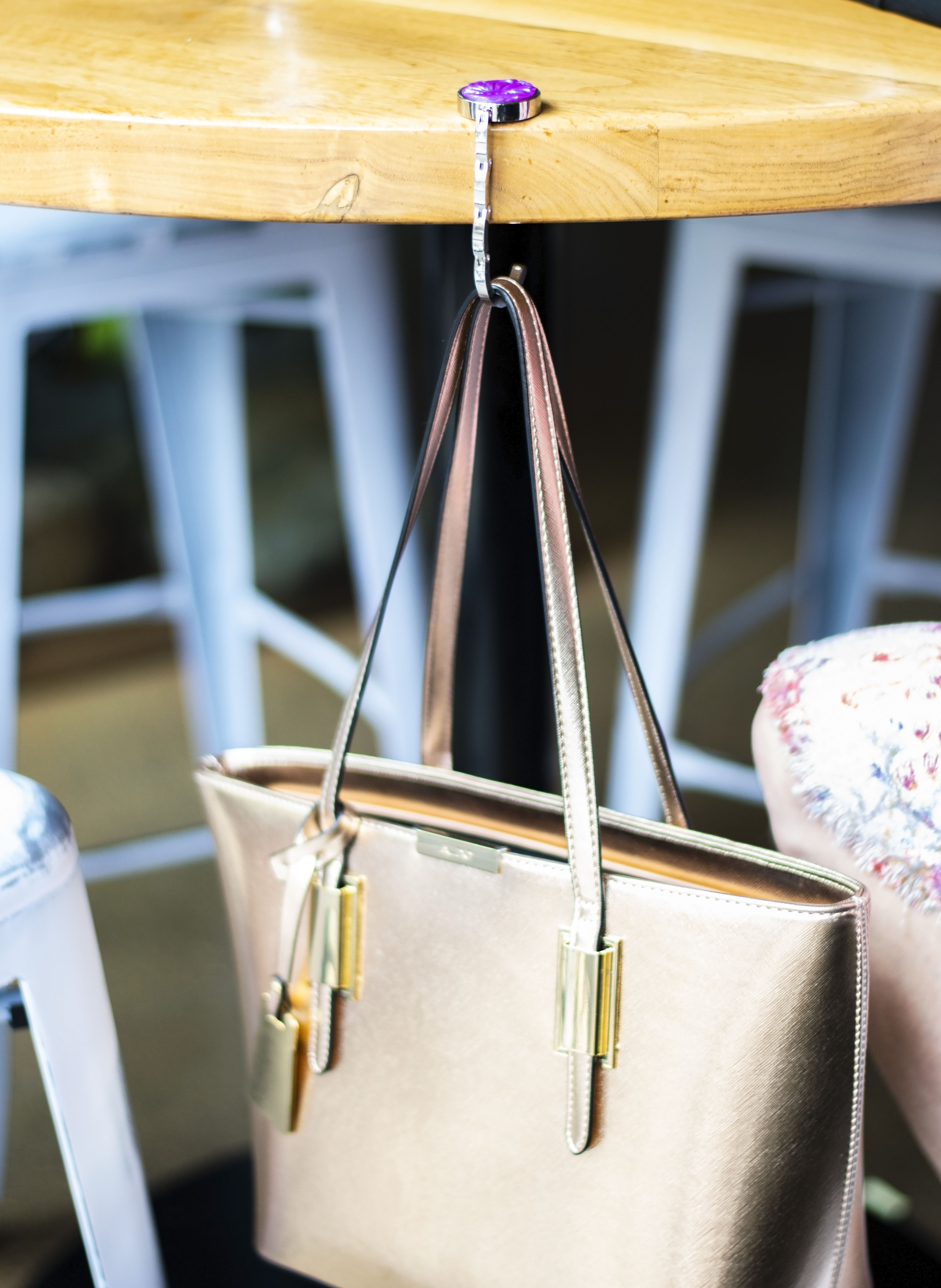 I was sent this hook for review and wanted to include it in this roundup of products. If you haven’t ever seen these purse hooks before, they are made to hang your purse at a table especially when you go out to eat. Considering we eat out at least once a week, it gets some great use. I included a photo of how I used it one time below.