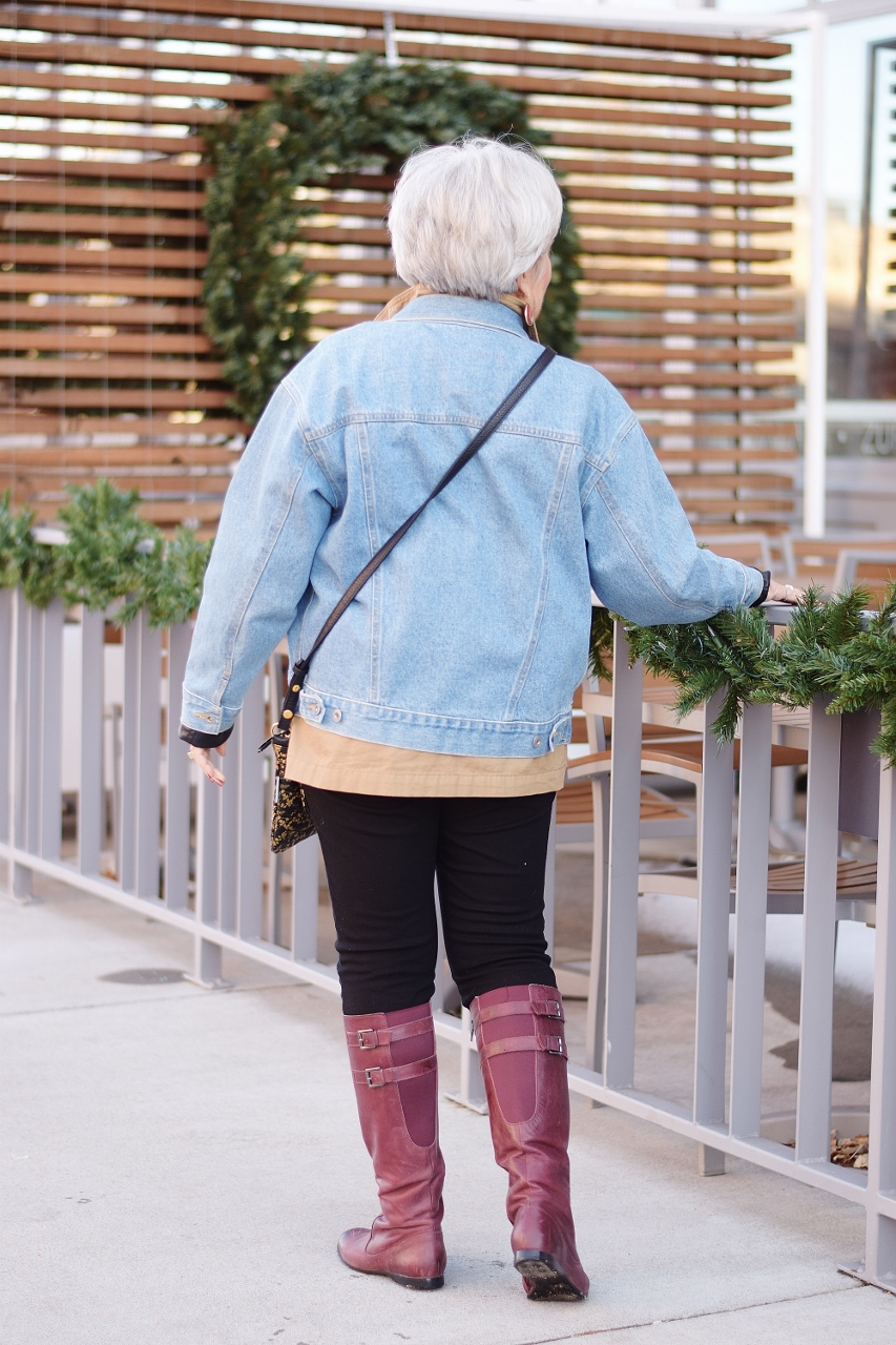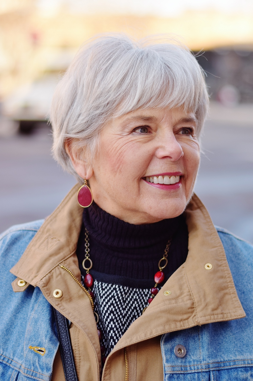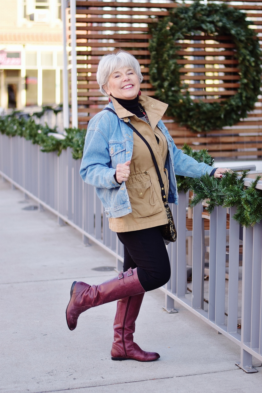 Nancy’s (60+) Outfit: Nancy used her jean jacket for this idea of layering coats.