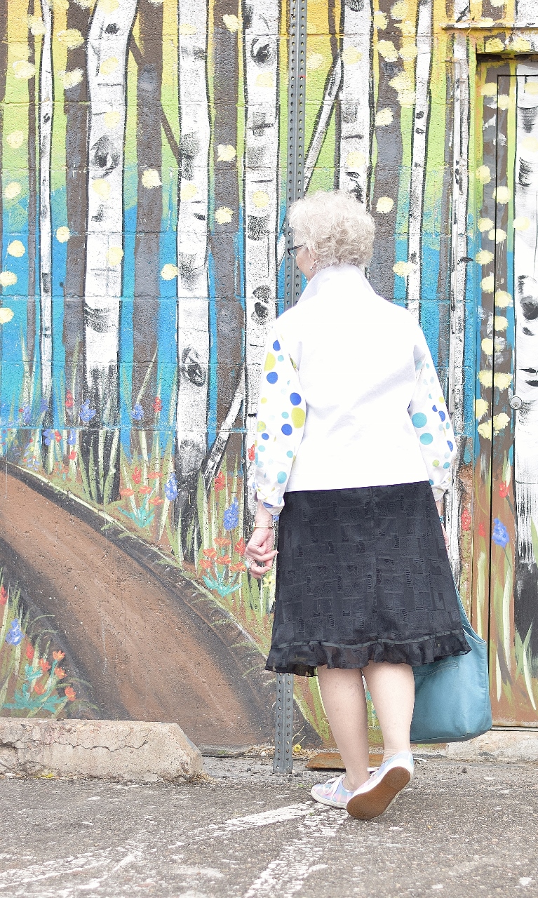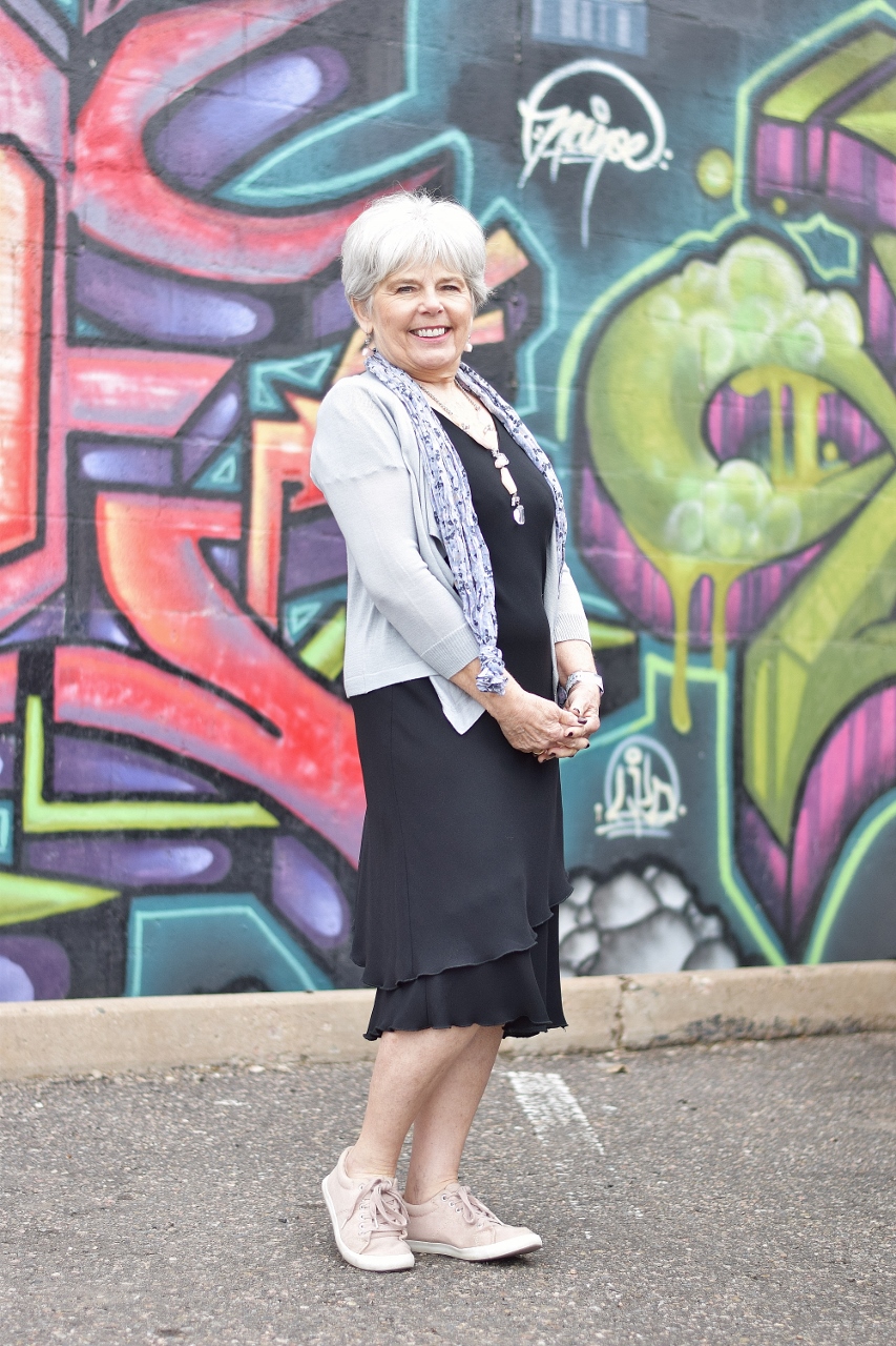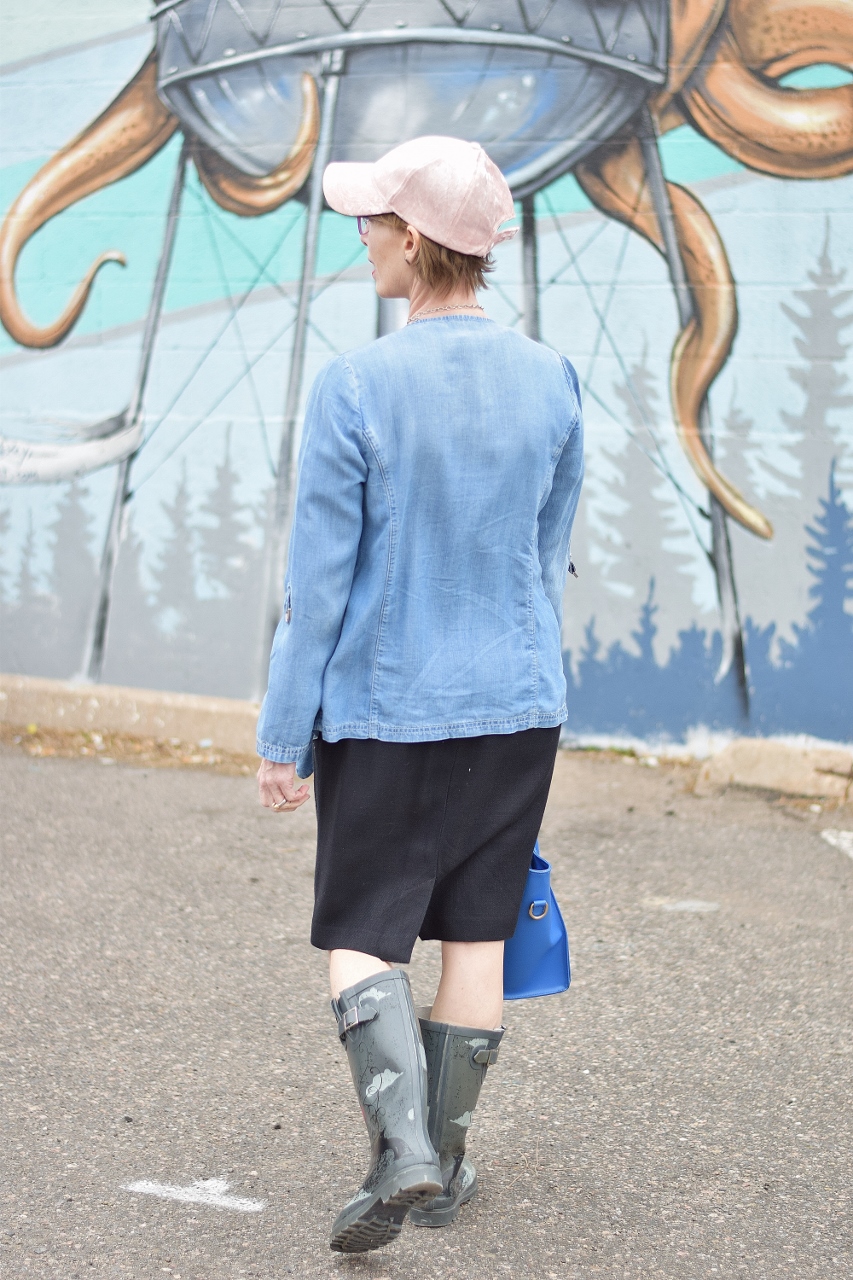 Jodie’s (50+) Outfit: I tend to think denim or chambray when I work to make my black dress style more casual.