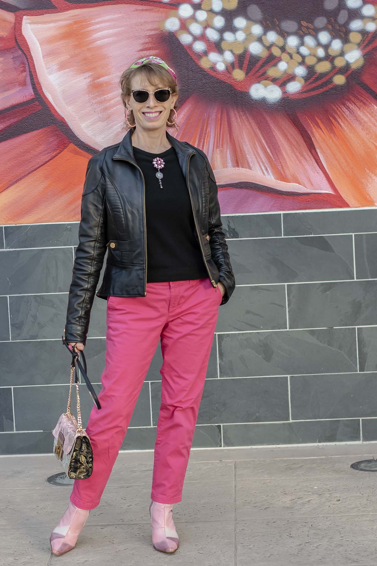 Maybe we should blame the Grananimals for always thinking we have to “match” colors. I know that’s how we were brought up but think about it. If you wear a blue and white jacket and everything else is blue or white, then it all just blends together. And again, it’s an easy way to become invisible.