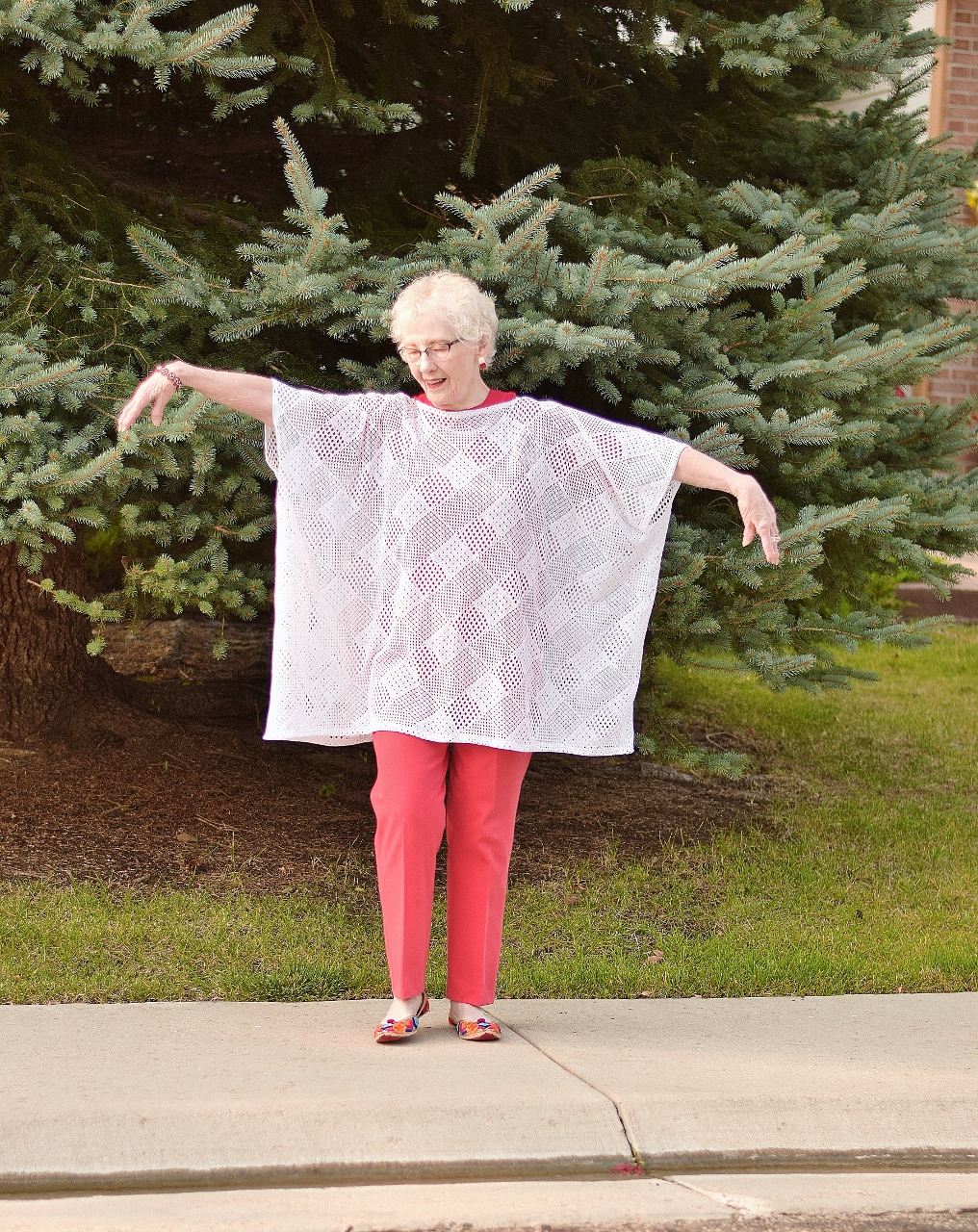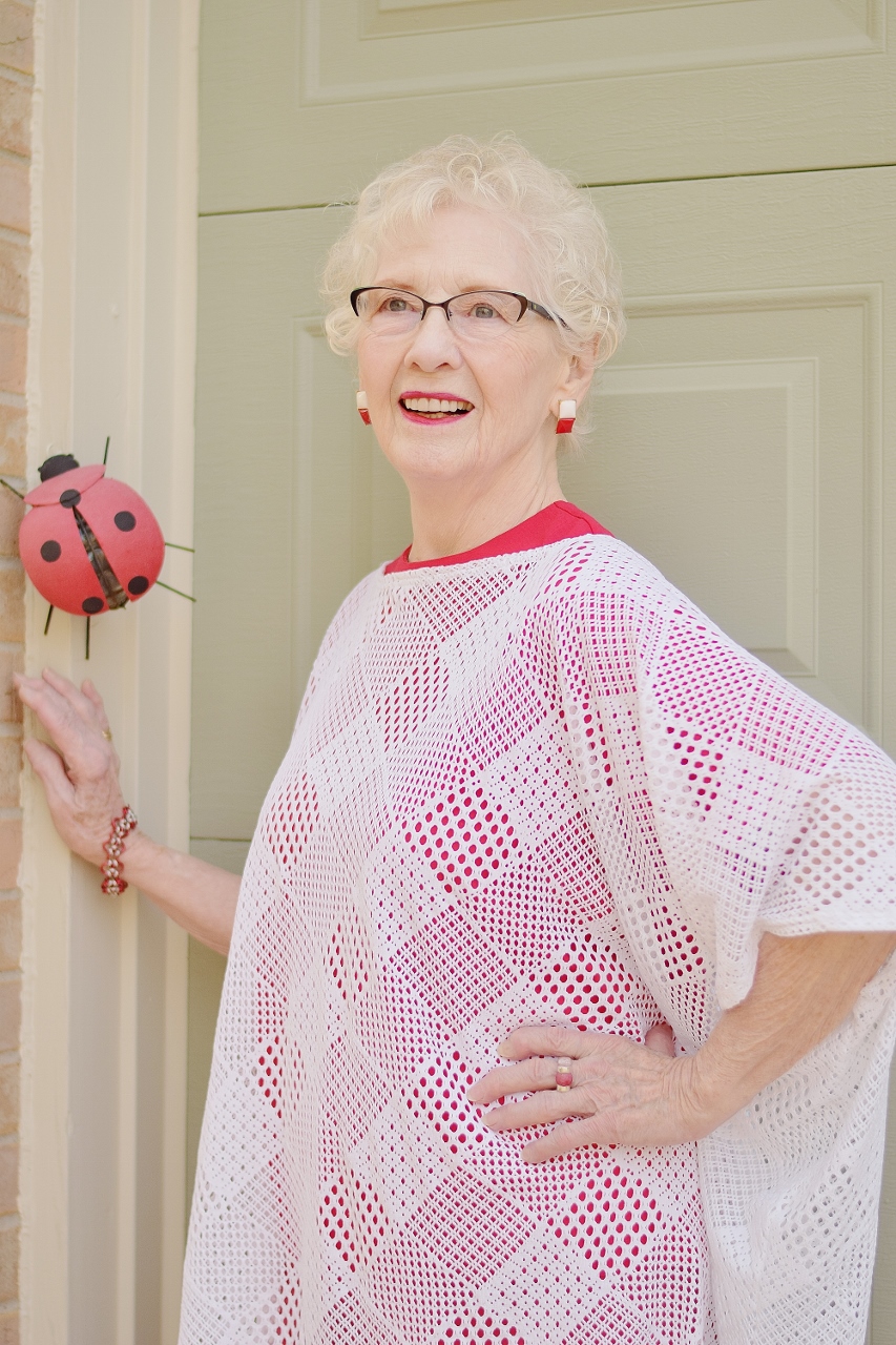 Charlotte’s (70+) Outfit: The one piece that we transformed for my mother was her bathing suit cover up from our beach style post.