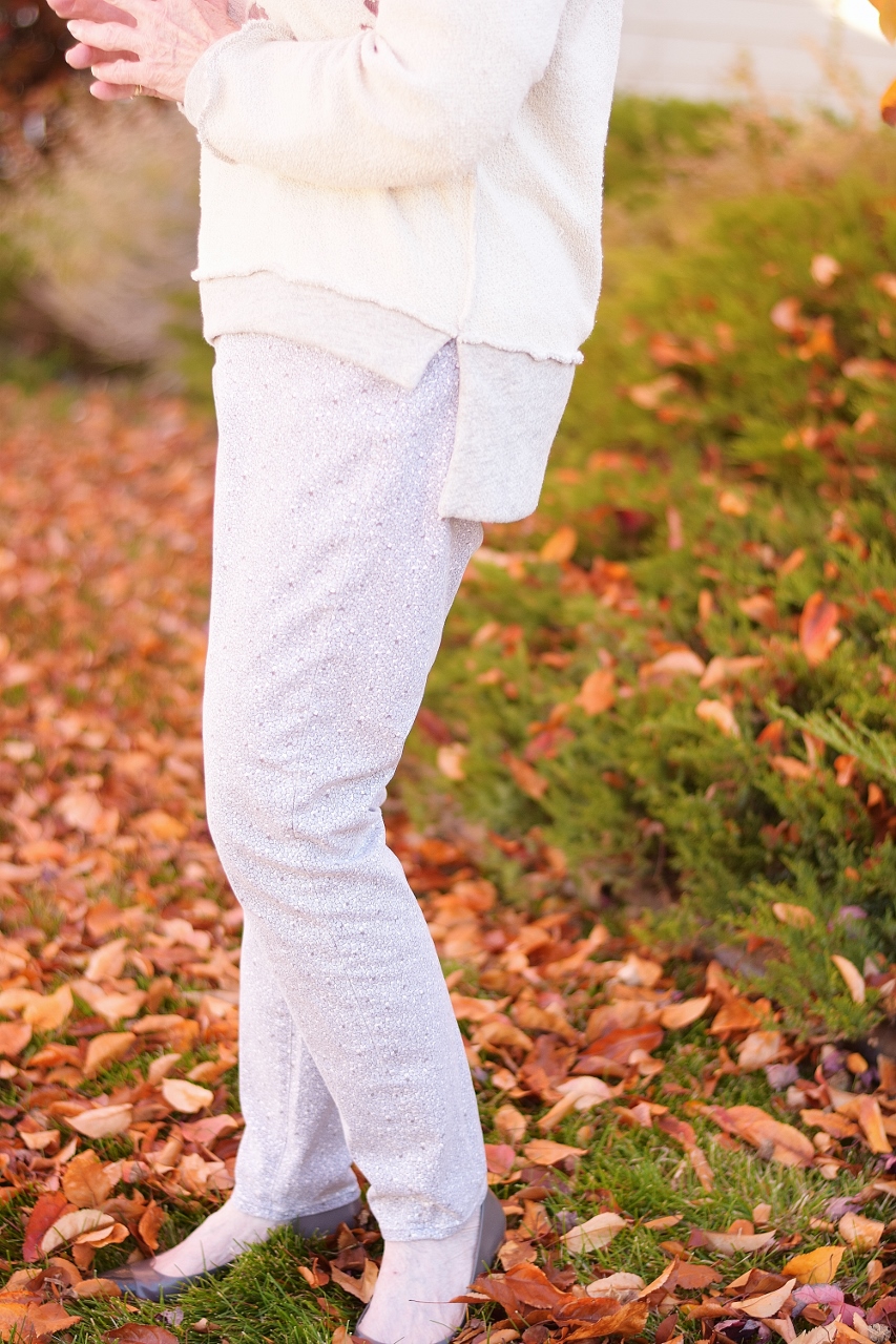 One last detail about my mom’s outfit are her grey flats. Maybe you’ve noticed, but my mom really likes to dress up, and for her to wear jeans and a sweatshirt is more uncommon than usual. But I believe her footwear choice actually makes this outfit seem a little dressier than if she had worn sneakers.