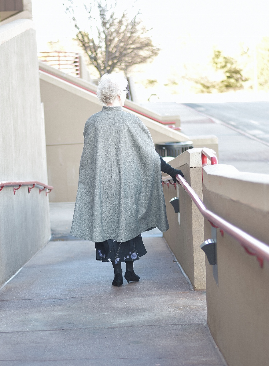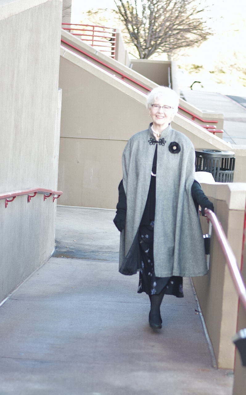You can see how my mom styled this same cape with a more colorful outfit here.