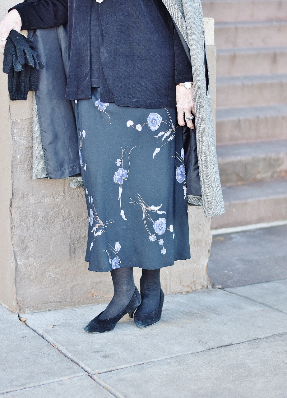 As for the shoes, we all find that black footwear is our go-to choice. I was stressing over the fact that my own black, suede booties have some scuff marks on them. And then I noticed that mom’s shoes do too. When do you decide that they aren’t savable? Do you think others notice these details, or not?