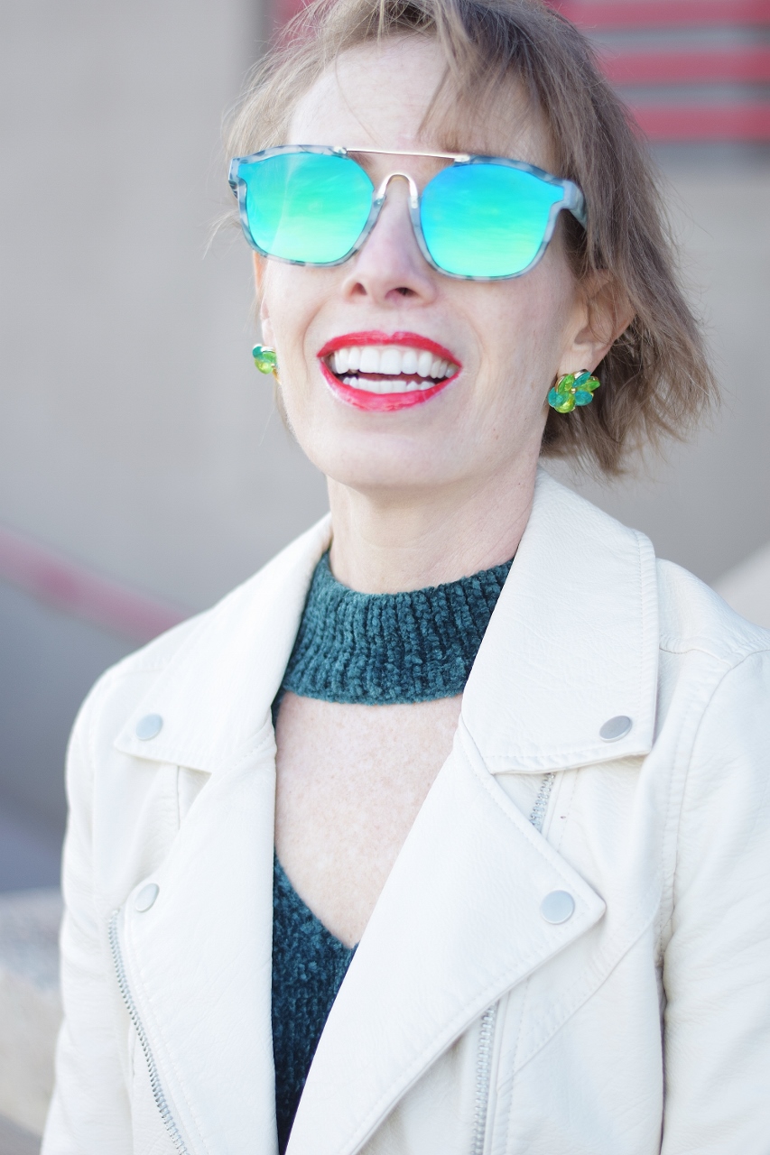 The other elements of Nancy’s outfit are the shoes and sunglasses. Have you updated your sunglasses lately? You can find some super fun ones for not much money online.