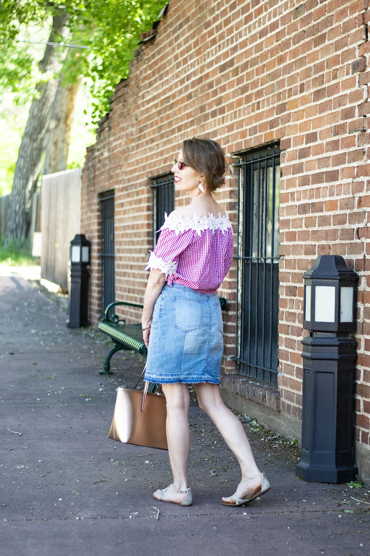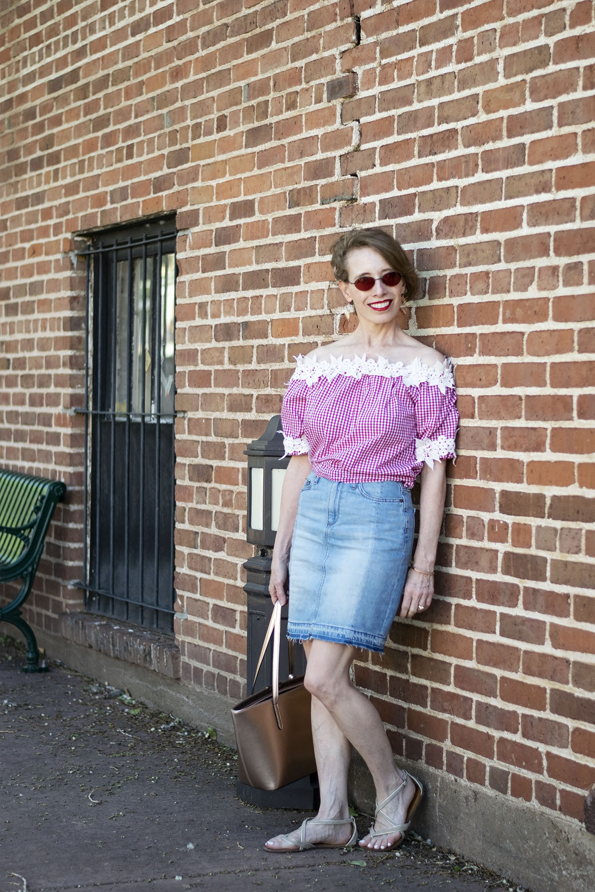 Wearing a skirt always seems easier in the warmer months for me. Since I’ve given up caring about the paleness of my legs, it’s so easy to embrace skirts and dresses in the summer. So I figure that a denim skirt is an easy way to be casual, yet stay cooler. And the newer denim skirts have spandex. Just like your newer jeans. So if you haven’t purchased one lately, you might like them better than in the past. Remember, denim is having its day, so there are even knee-length denim skirts or midi denim skirts that might tickle your fancy.
