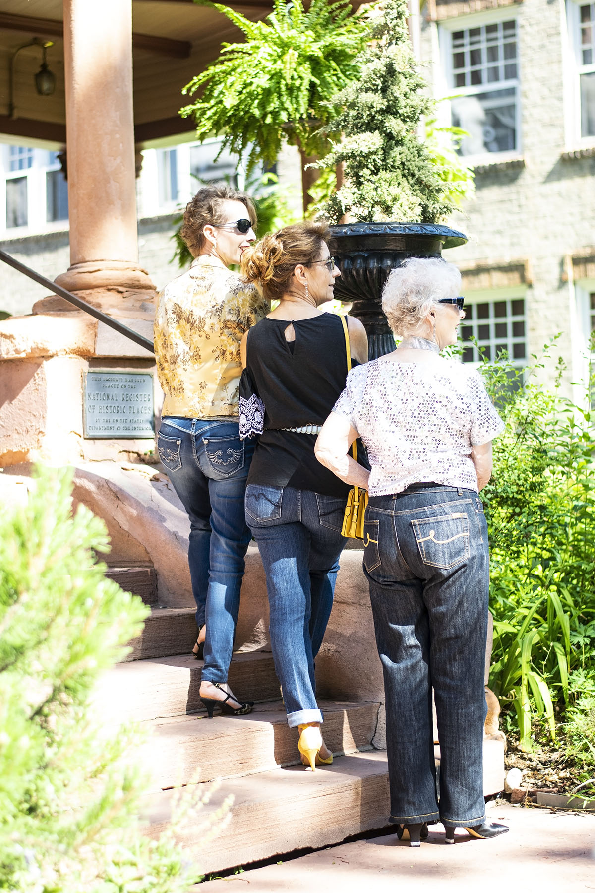We started this collaboration with Sheela and Eve by styling our jeans for a casual day. That’s an outfit you may put together all the time without our help. But it was fun to see how the mother/daughter teams approached it.