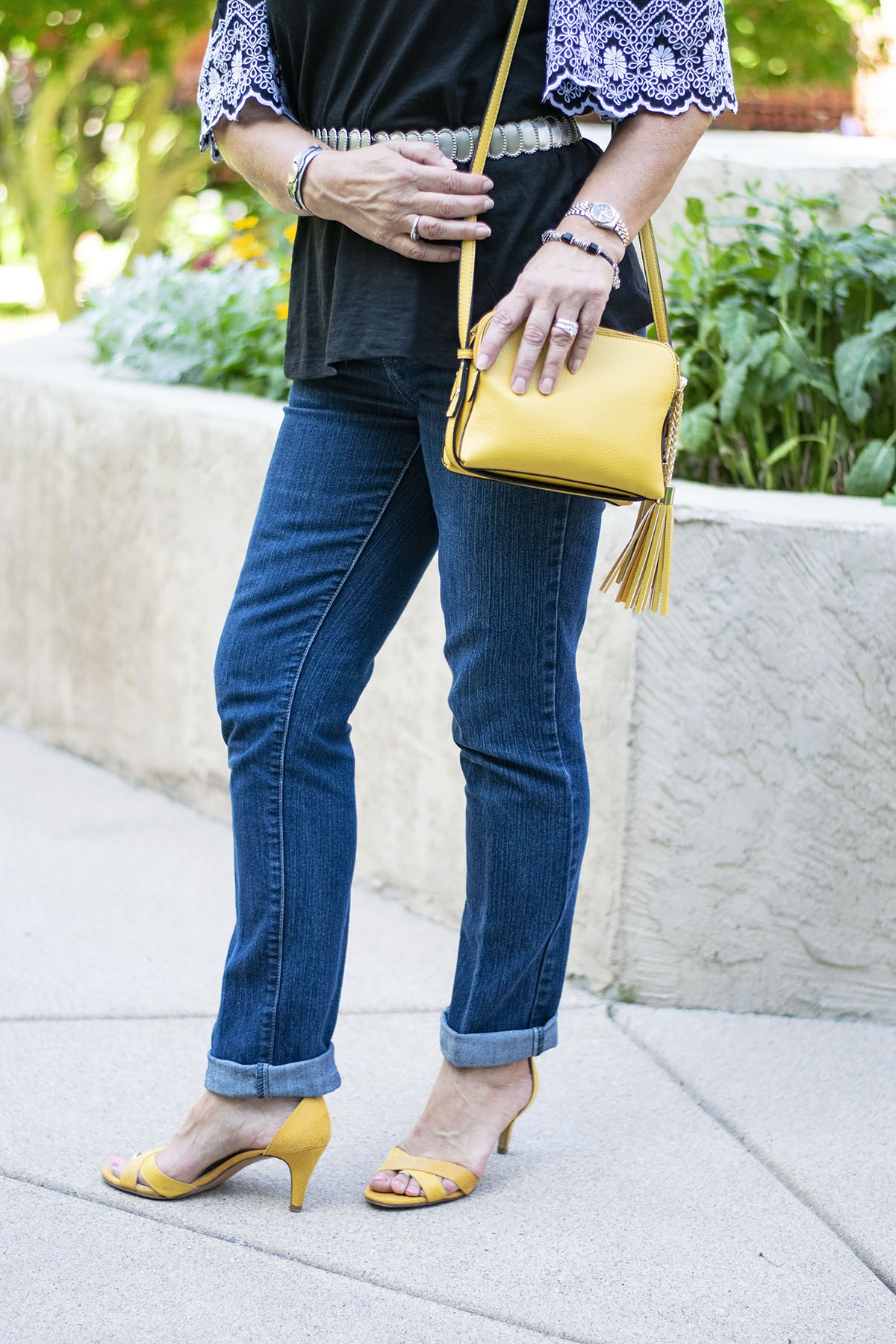I love that all 3 of us went in different directions with trying to make our denim jeans fancy. Yet all of the details of gold, silk, lace or sequins can make anything seem dressier.