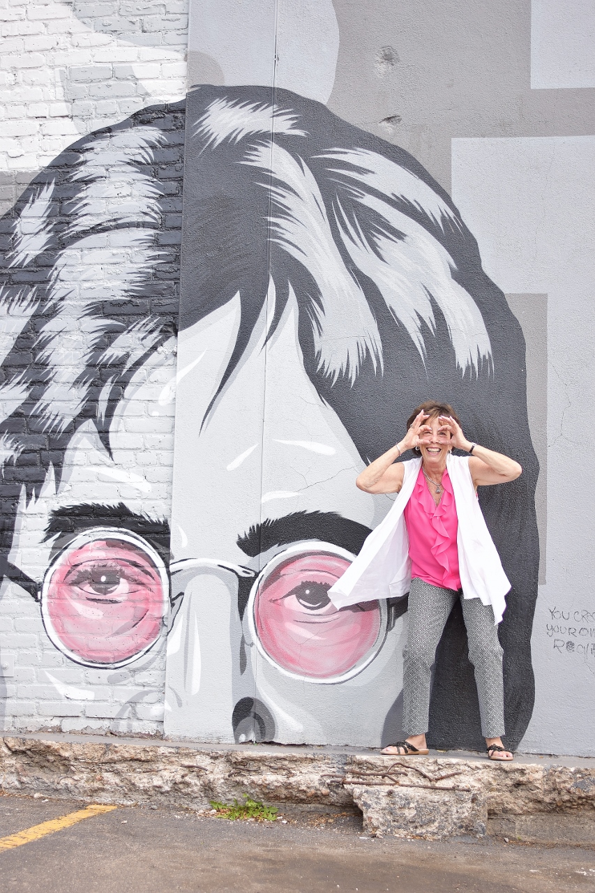 One of my favorite details about Eileen is that she doesn’t shy away from color!! That’s why I put her in front of the John Lennon mural. Her pink top matched his pink glasses!!