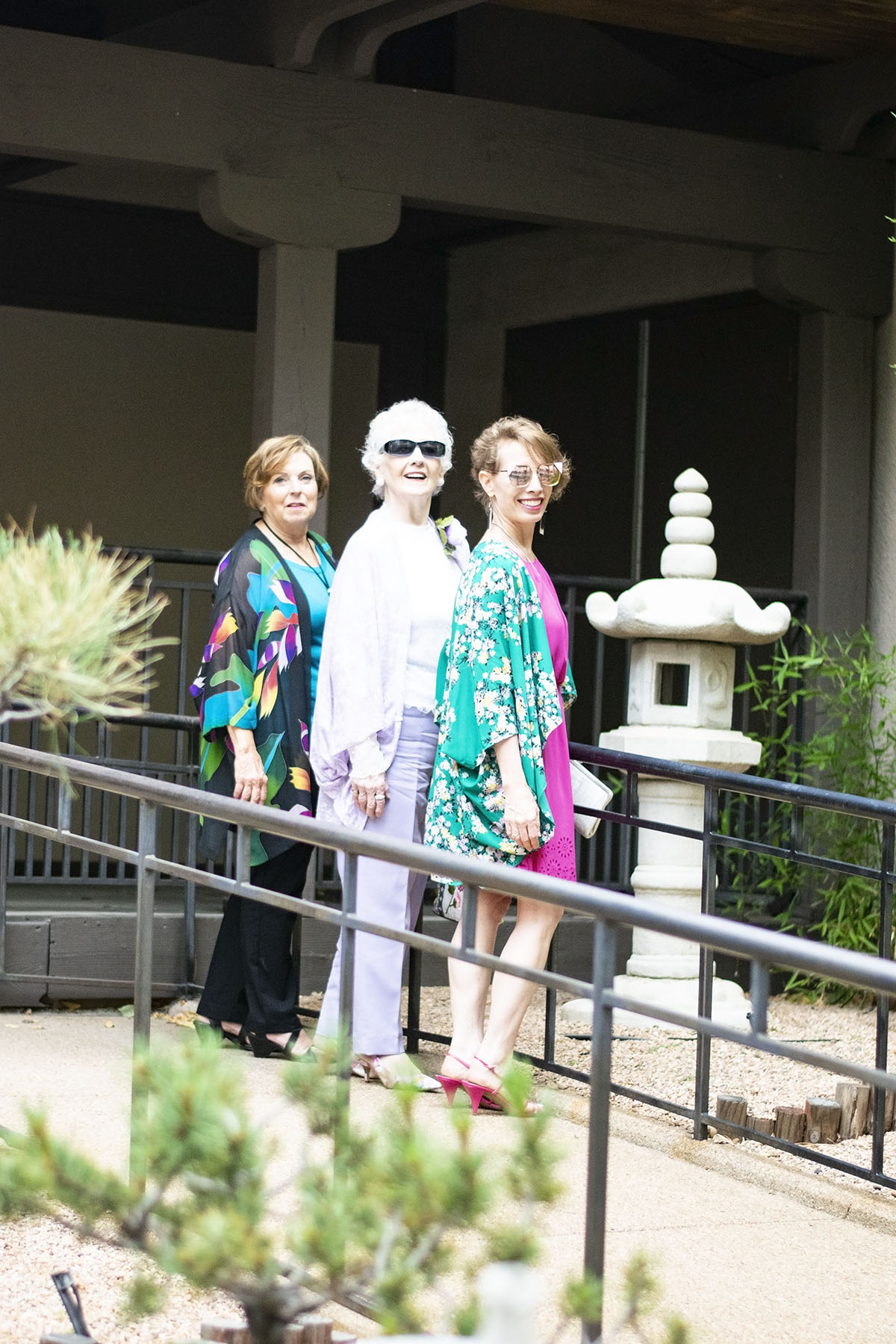 Personally, I love that Lesley didn’t match her purse but instead chose an alternative color from the kimono. That concept may not be the “rules” you were brought up to believe, yet I think it’s a modern touch.