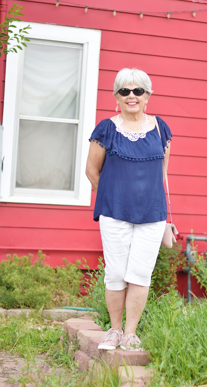 Jodie’s (50+) Outfit: When I think of summer shirts, I think of white tops!!