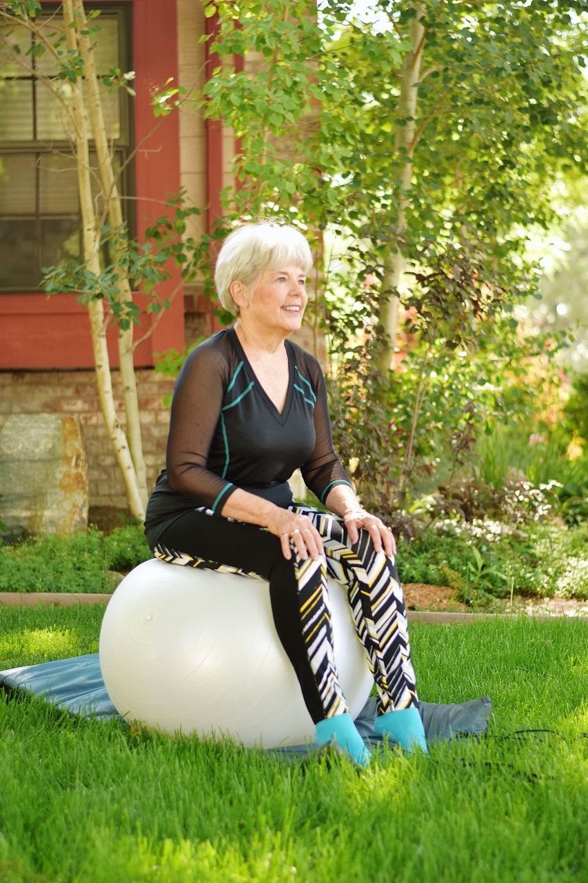 Nancy’s (60+) Outfit: I had Nancy wear her Tenaz Athletics shirt with her leggings as she would for her Pilates class.