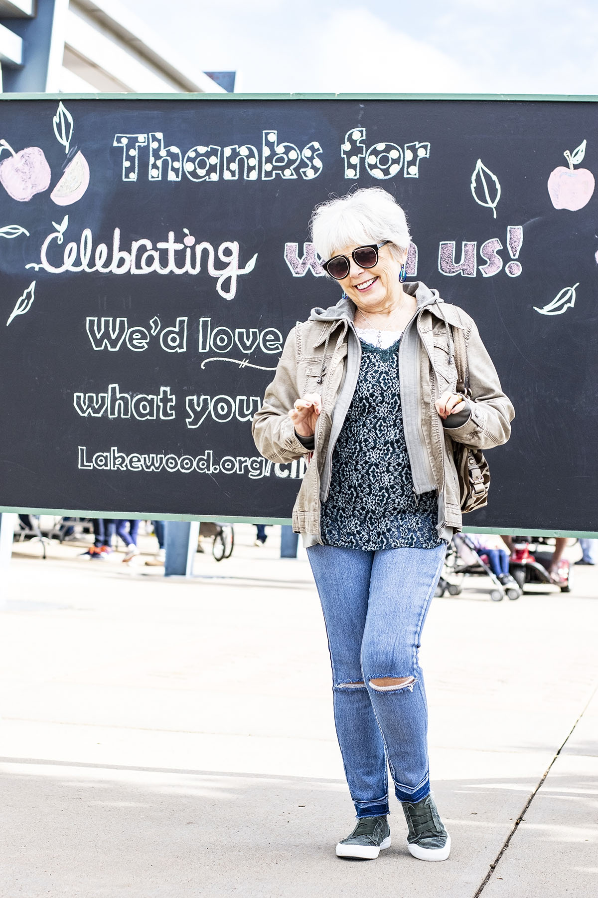 Let me point out in the photo right below here. You would never look at this outfit and realize that an 80 year old woman was wearing it. Right? Not that I would EVER say it’s bad to be 80. Yet that’s the power of wearing the right clothes. They not only can make us feel young; they can affect how others react to us.