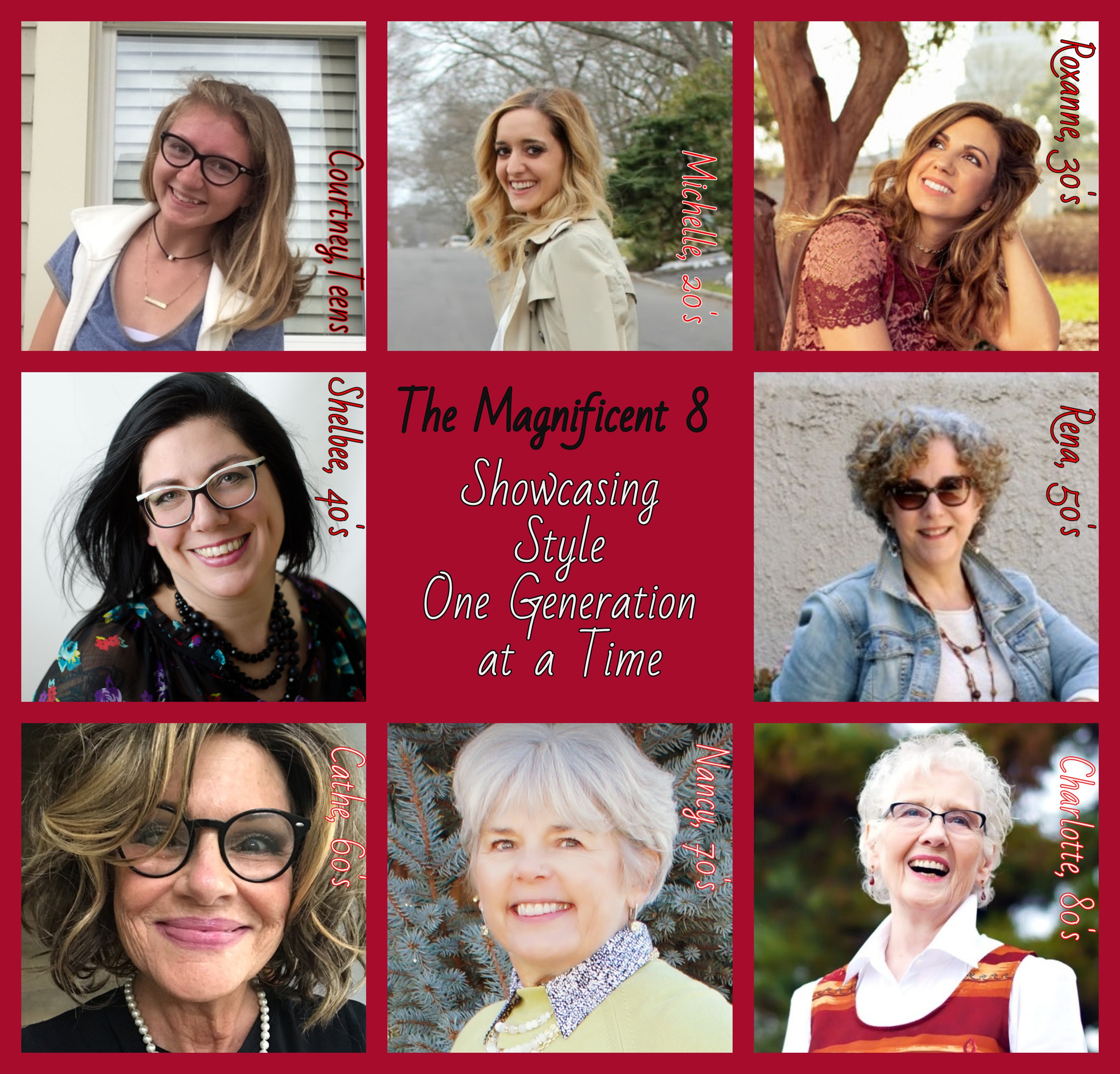The Magnificent 8 is a collaboration among 8 stylish women from every decade of life showcasing our style one generation at a time. The mission of this collaboration is to show you just how ageless style is, how we can each dress however we’d like and in ways that make us feel fabulous. There are no age restrictions on style. So wear what you want, when you want, add a smile, and strut your style with confidence.