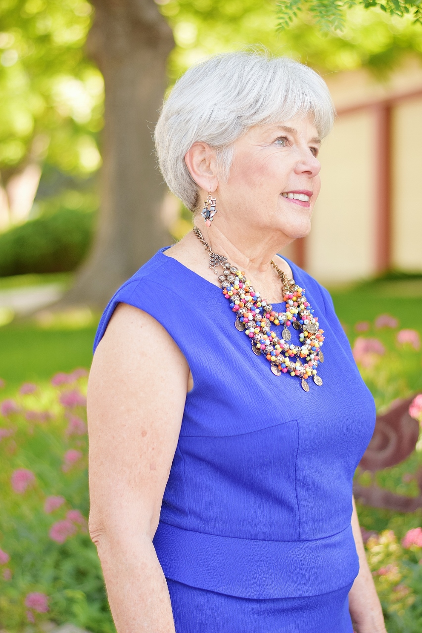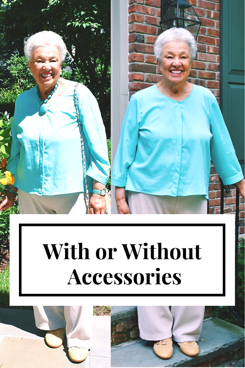 Nancy’s (60+) Outfit: For Nancy’s comparison, we added in a large colorful necklace.