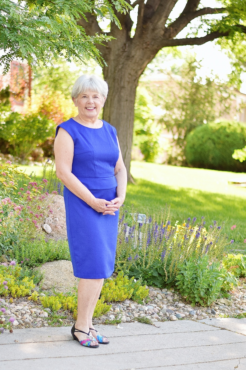The outfit without the accessories is below. This dress is one of my favorites of Nancy’s because of the color and fit. However, it looks so plain without any extras!