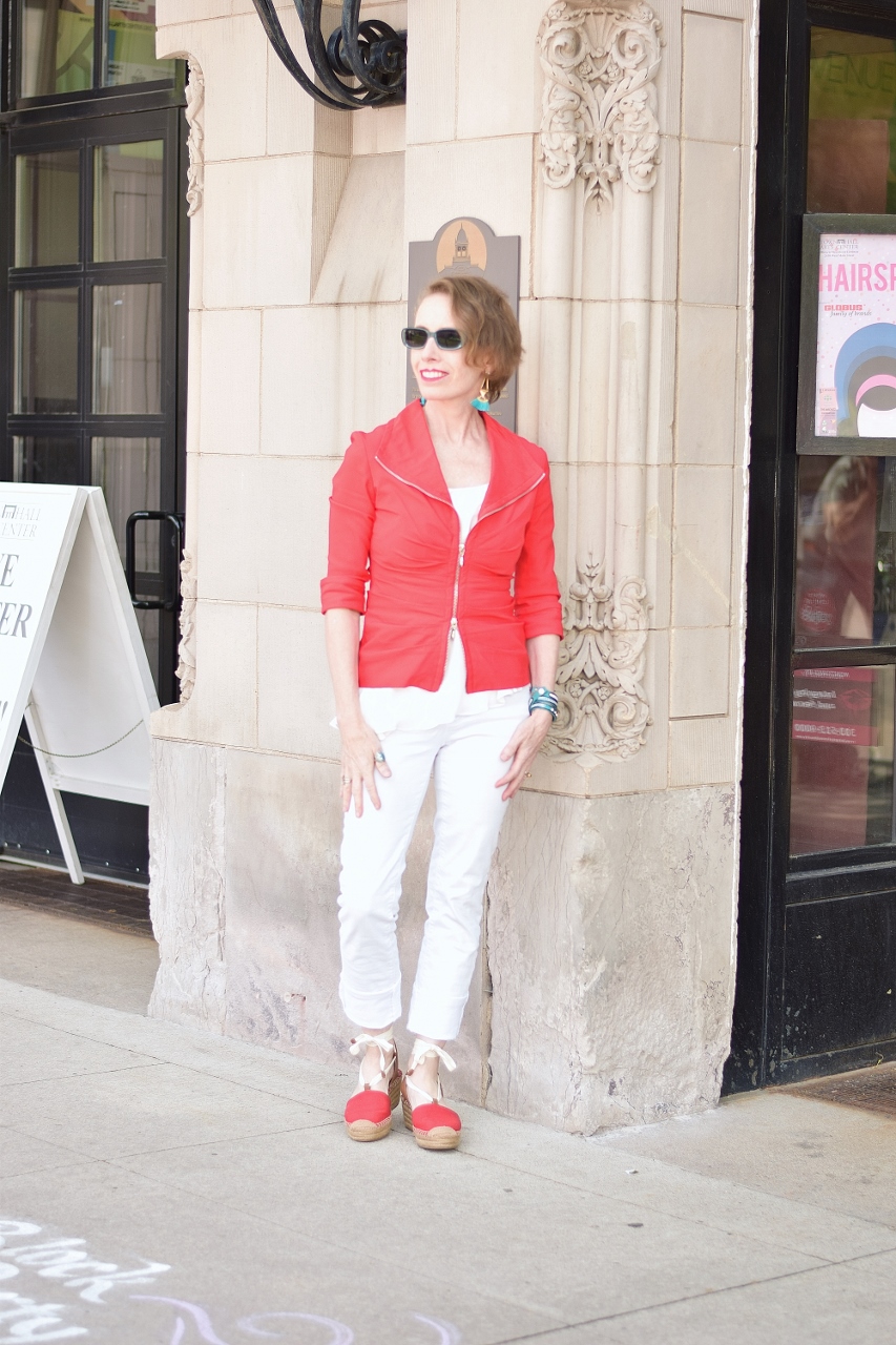Jeans: LOFT (here)~~Jacket: Joseph Ribkoff ~~Top: Stephanie O )~~Shoes: Louise et Cie ~~Earrings: Stella & Dot ~~Bracelet: Boho Betty ~~Sunglasses: