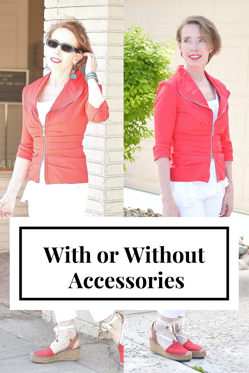 A side by side comparison is the easiest way for me, personally, to always evaluate things!! Of course, I’m partial to wearing accessories with solid colors as they can add so much interest to the look! The accessories can pull together the colors in the outfit or add in another color!