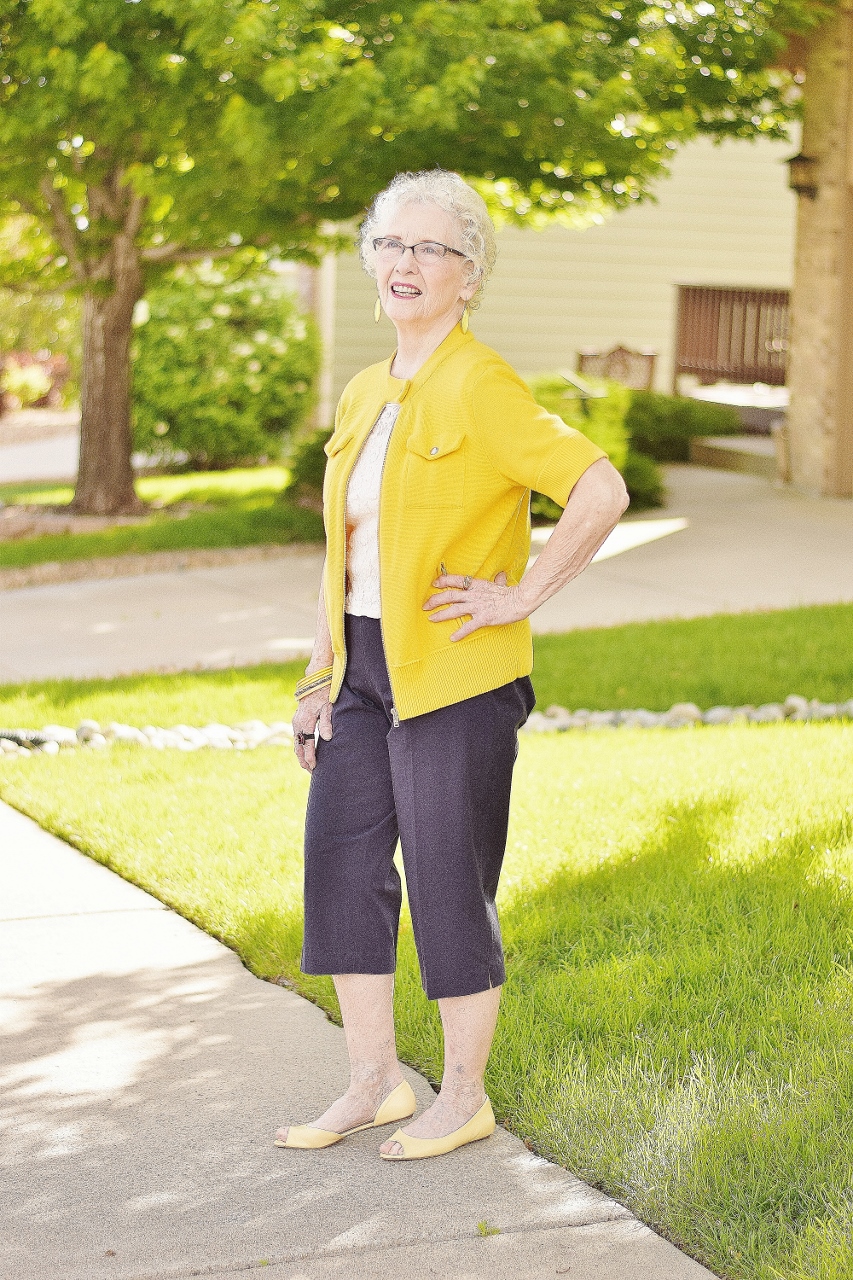 Both Nancy and I did wear the same capris in both of these posts, but my mom decided to change hers out. The material and color of your capris could be part of the equation if you would wear them to a dressy event. This pair seems more shiny which always seems less casual to me!