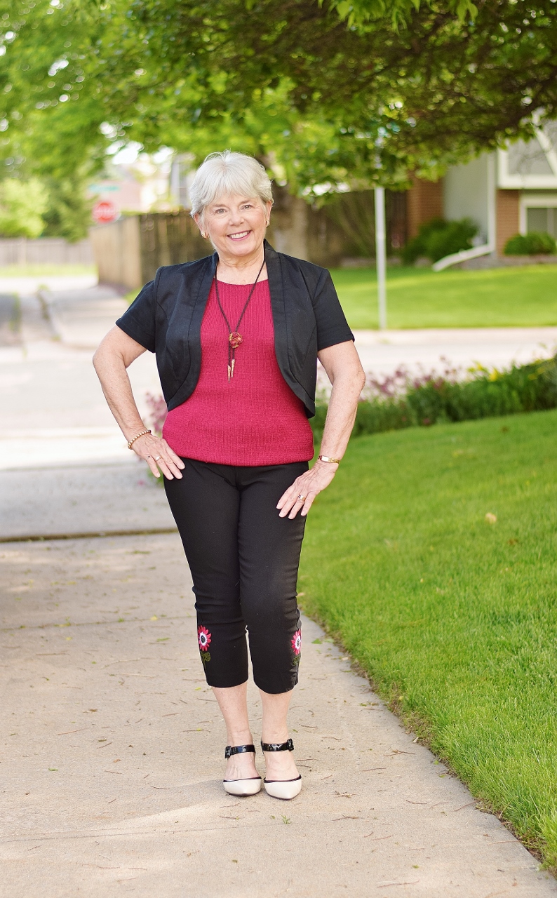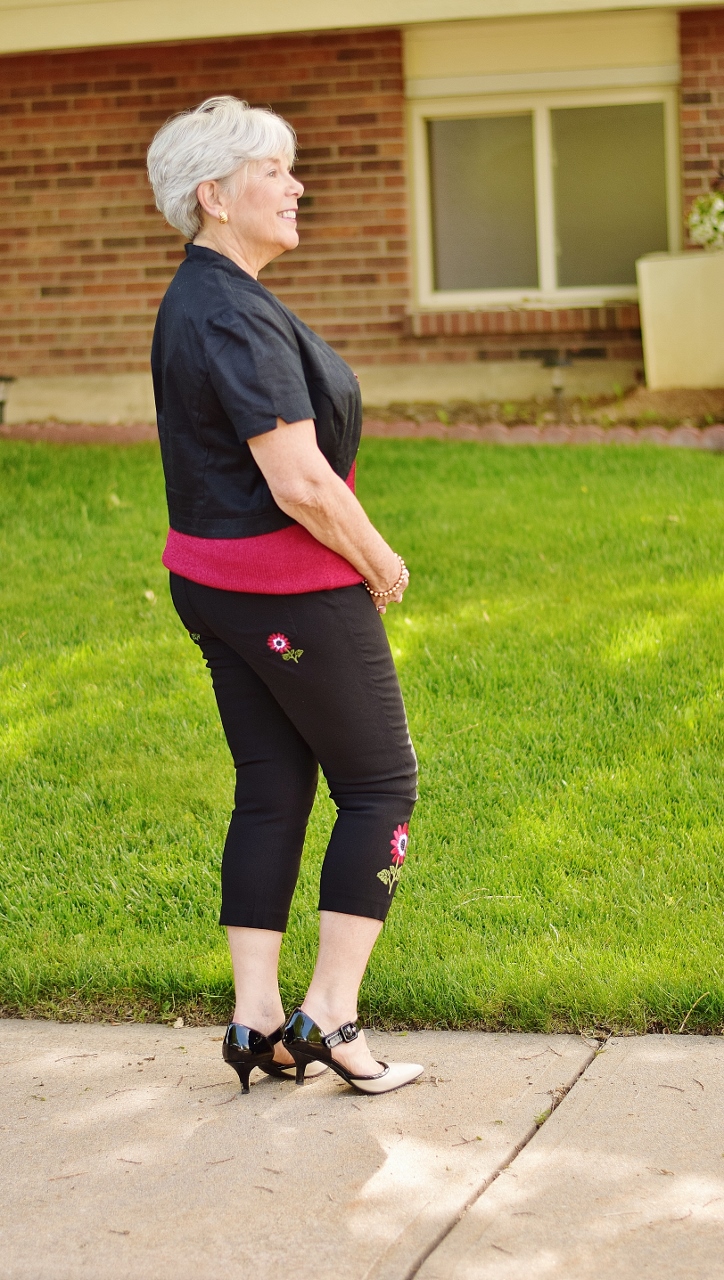 Nancy’s (60+) Outfit: Black capris always seem like they dress up easier!