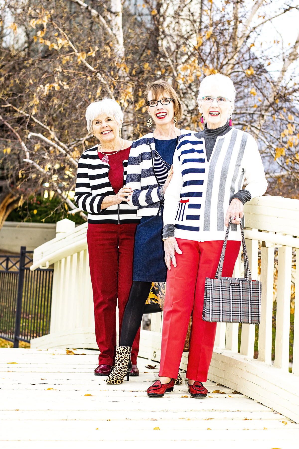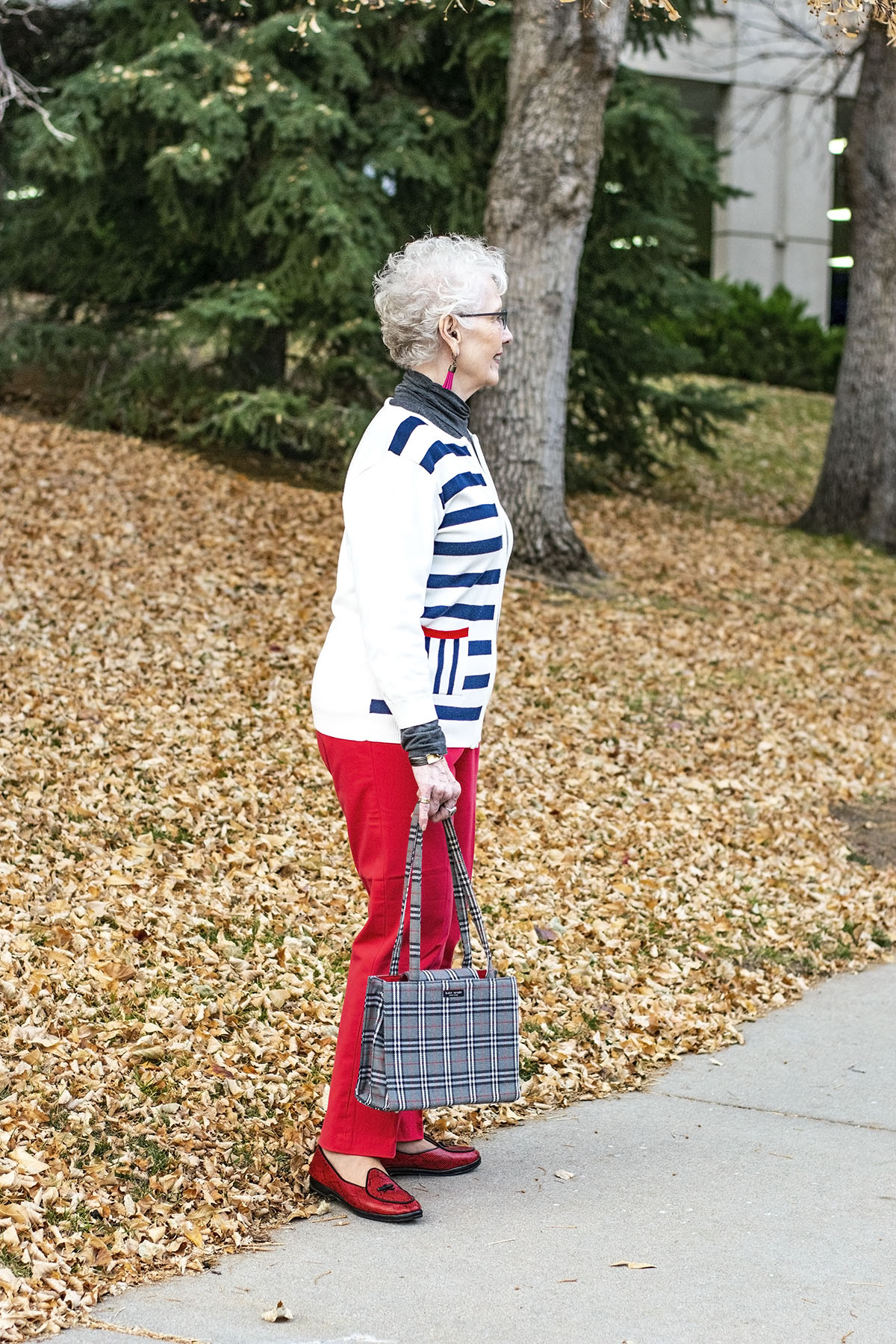 I like how my mom added in the grey as her turtleneck since that color is in the sweater too. Otherwise you might feel that the red, white and blue vibe is taking over.