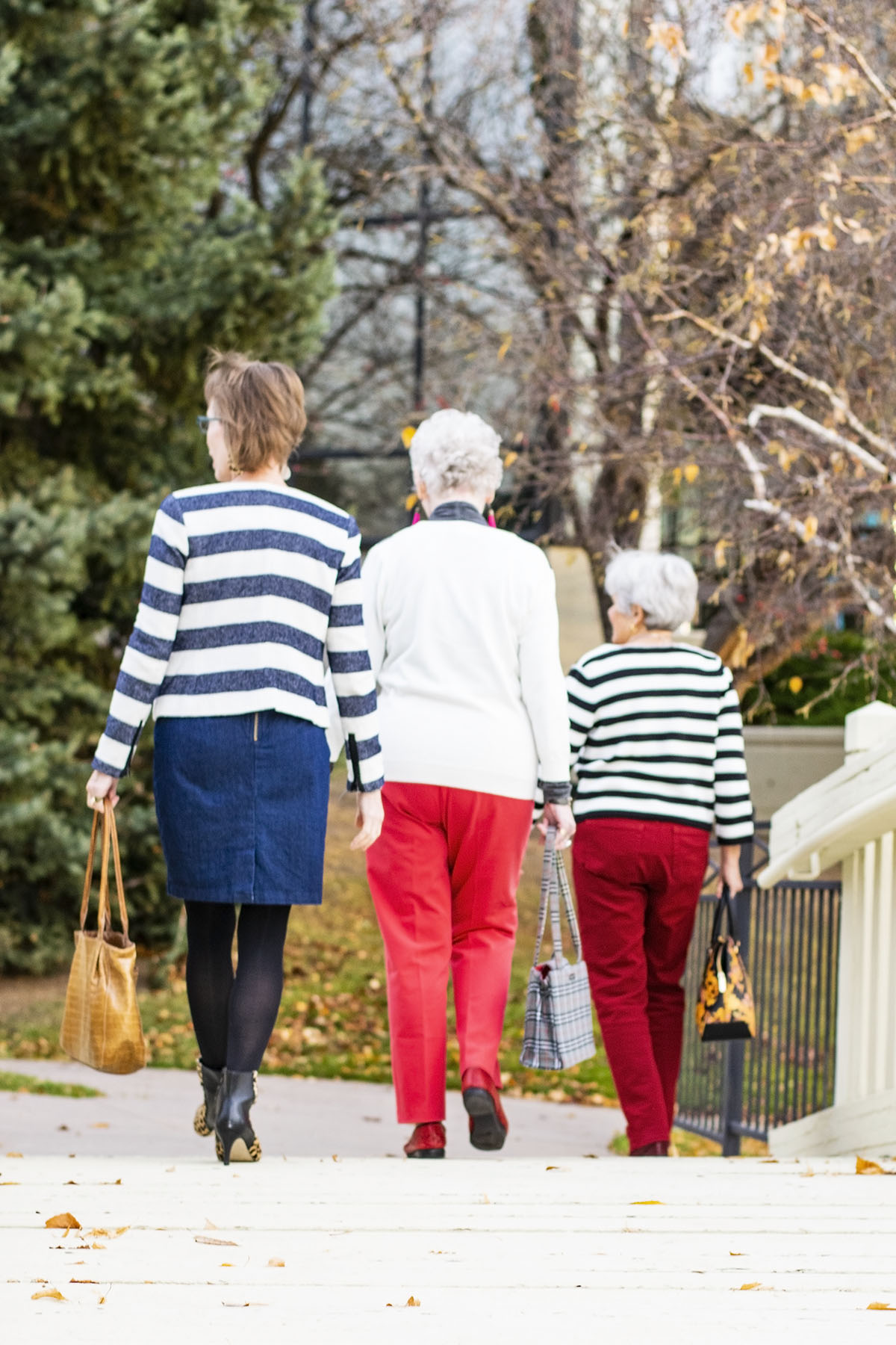 I think it’s humorous that not only did my mom and Nancy both wear red jeans, but they both added in a print purse to the mix. Maybe it’s true that we start thinking alike when we hang around each other so much, LOL!