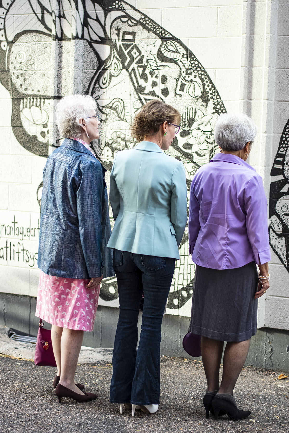Adding some winter pastels to your outfits can be easy with a few steps. Start by pairing them with a darker neutral like the three of us did in these photos.